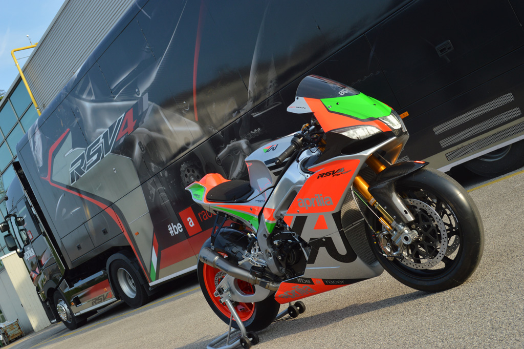 The first model is the RSV4 FW-SSTK MM RACE, a race-optimized RSV4 RF with lighter components, a reprogrammed ECU, advanced instrumentation with race telemetry, an electronic gearbox with an assisted downshifter, and a whole host of optional aftermarket race-bred accessories.