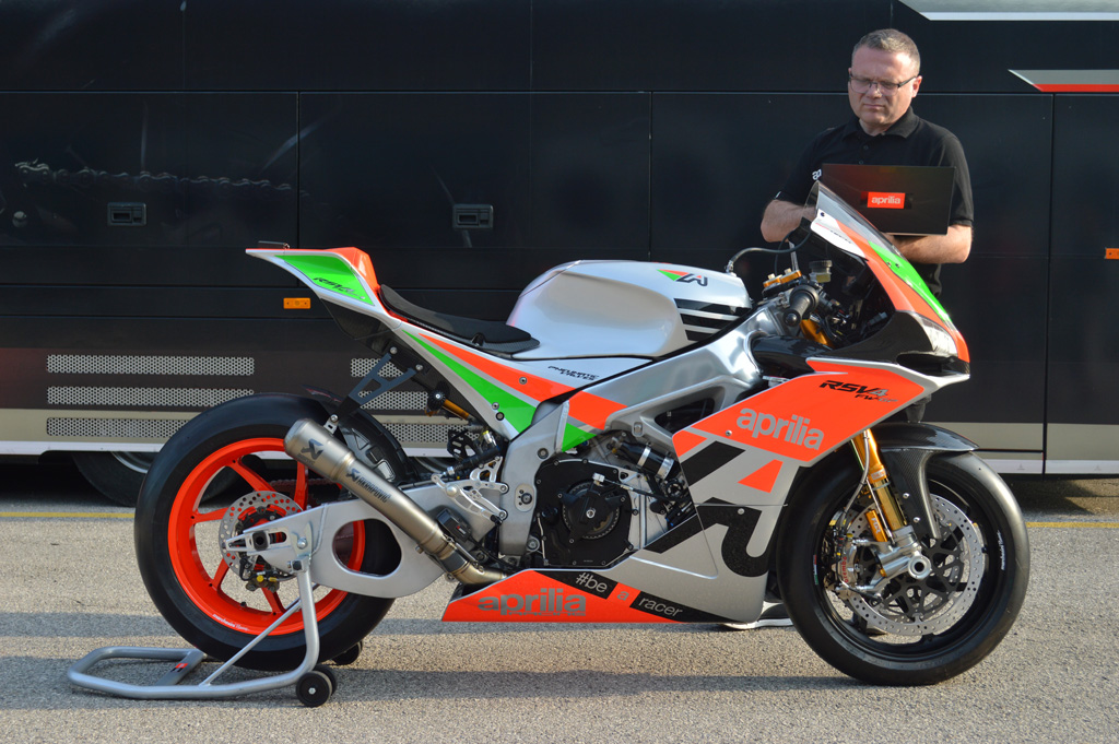 Standard electronics ECU reprogrammed in Race version, exclusive Aprilia Racing engine control and vehicle dynamics map.