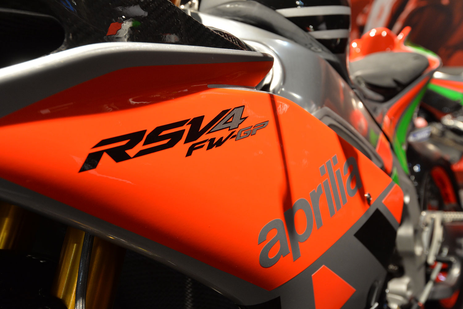 The RSV4 FW SBK is built for superbike racing participation, conforming to all WSBK rules. Based on the RSV4 RF, the FW SBK model boasts lighter components, a dedicated racing electrical system, an advanced APX2 ECU, the same electronic gearbox functions mentioned above, and special engine tuning for the ultimate track performance. The maximum power is rated at 215 horsepower.