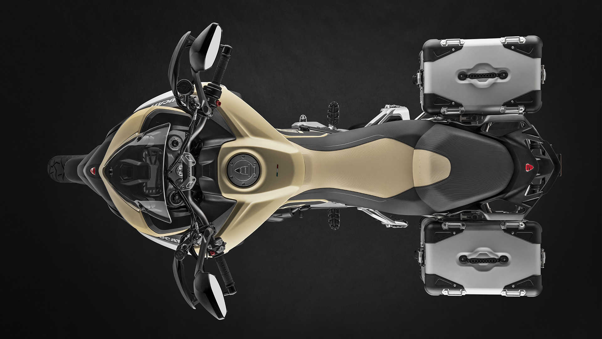 The chassis has been revised for nimble maneuvering and improved handling at slower speeds, which is particularly helpful two-up or when laden with luggage. New fully adjustable suspension and Ducati’s Skyhook Evo system makes riding a dream, no matter the conditions.