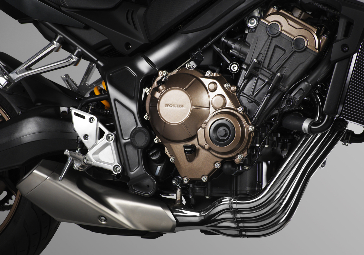Changes to valve timing and piston shapes (compared to the previous generation CB650F) have improved engine response, especially from the idle to 8000 rpm, a big advantage in urban environments.