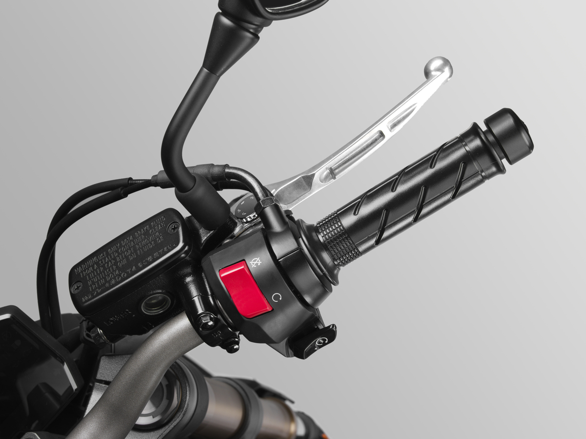 With Honda Selectable Torque Control System (HSTC) the CB650R offers you peace of mind during aggressive riding conditions. The system adjusts engine power to optimize torque at the rear wheel, reducing rear-wheel slip. And here’s the best part: you can turn it on or turn it off with a handlebar-mounted switch.