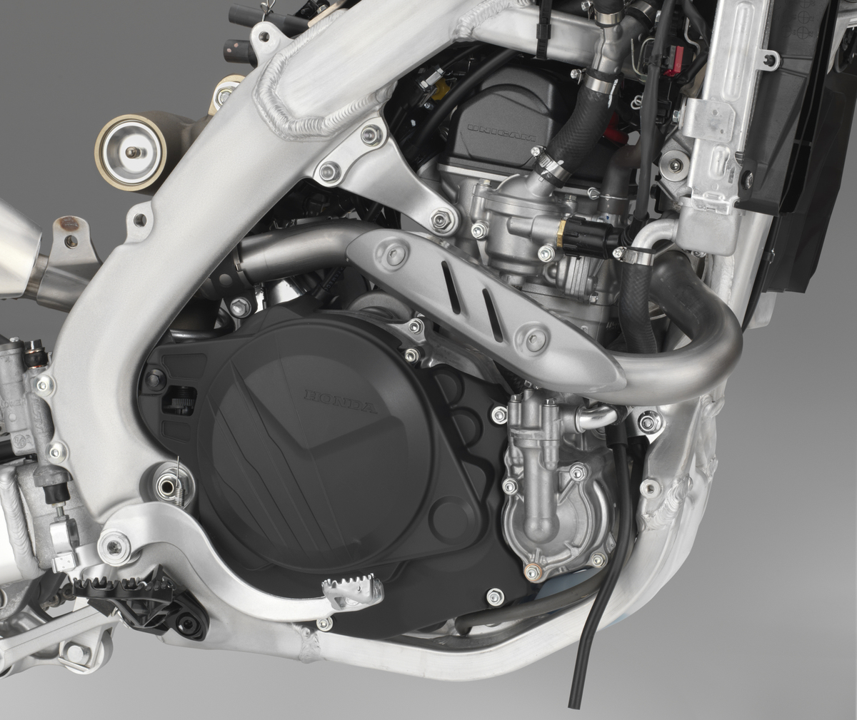 Last year we redesigned the CRF450L’s crank to have 13 percent more inertia than the CRF450R. Why? To smooth out power delivery and make the engine more user-friendly in tight, technical situations.