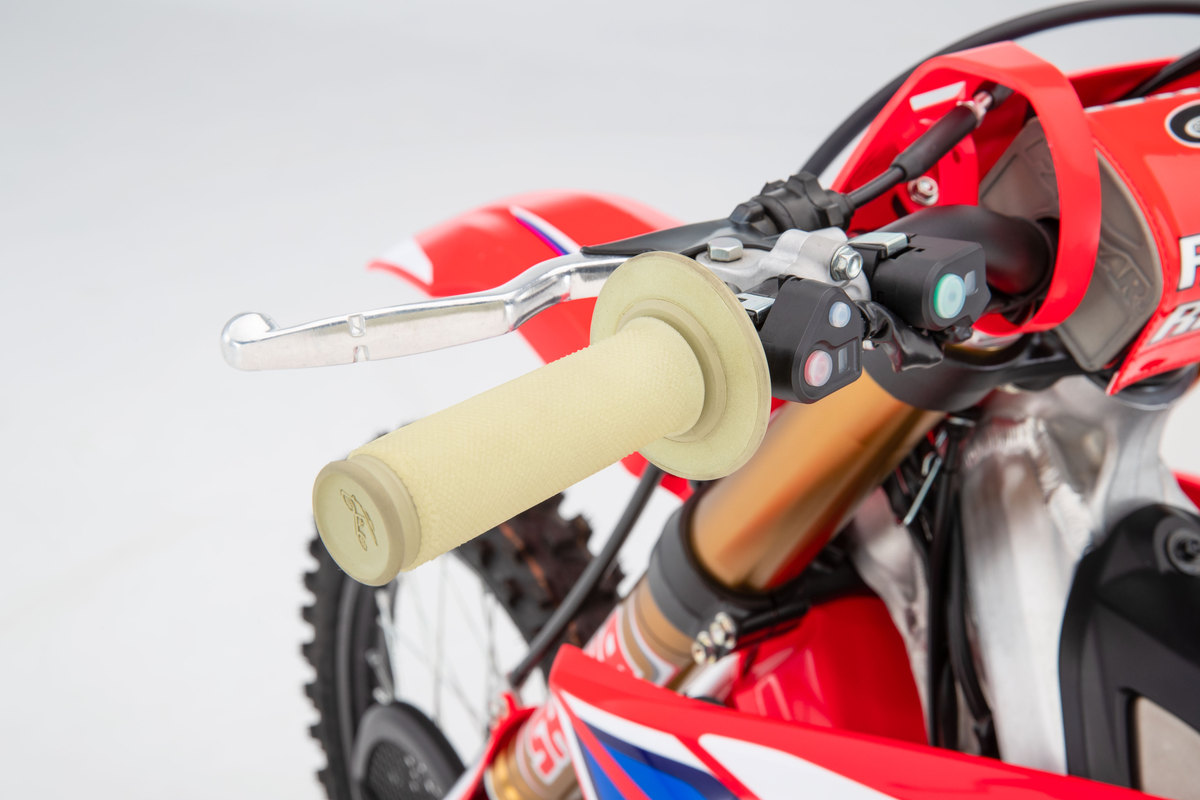 The aluminum Renthal Fatbar features a bend that’s even better than the legendary Honda “CR” bar. It’s the new standard of excellence—you’re gonna love it! In addition, the CRF450RWE gets special Renthal grips.