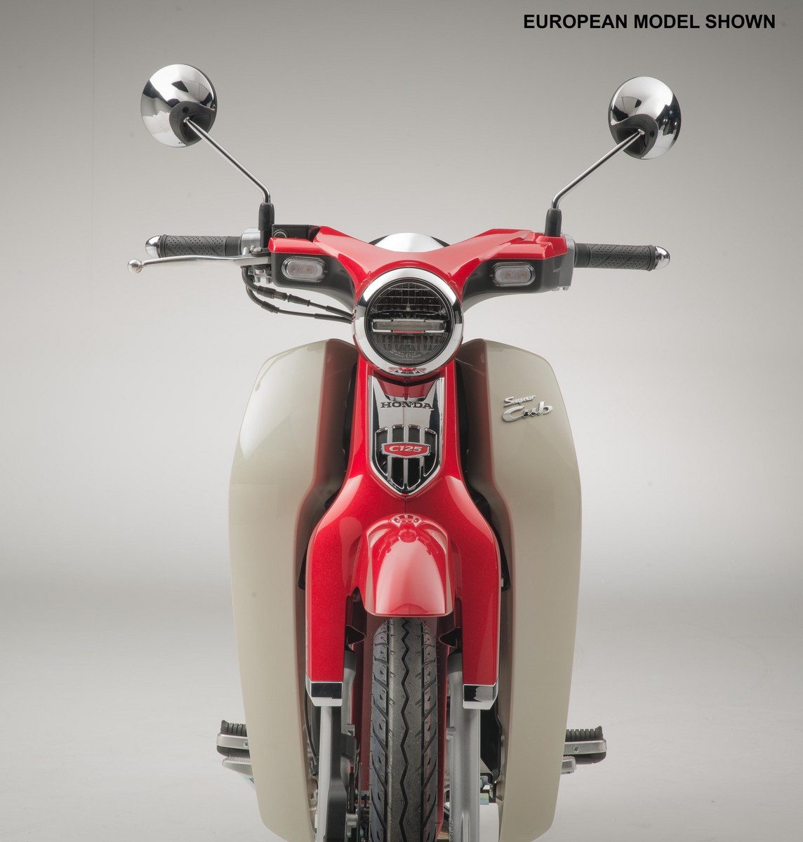 The Super Cub’s round headlight looks retro, but its LED performance is totally up to date and provides superior illumination and visibility.