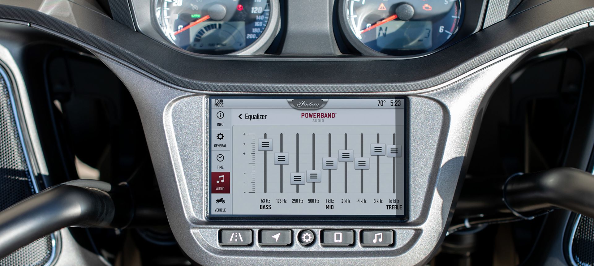 The high-output, 6.5” speakers deliver 100-watts of crystal-clear audio, while the dynamic equalizer automatically adjusts for road, wind and engine noise so you never miss a beat.