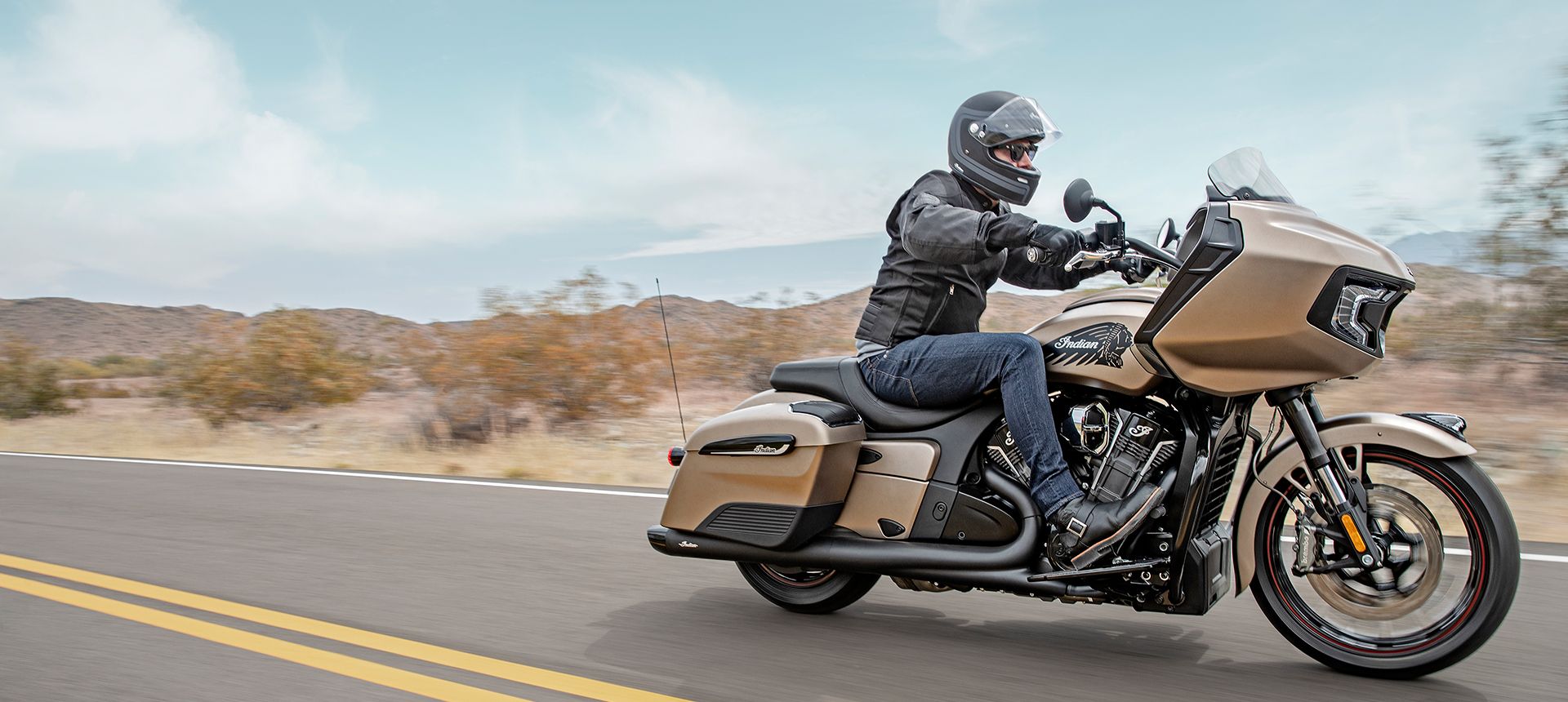 With its menacing LED running lights, a central headlamp, and a redesigned and modernized Indian Motorcycle headdress enhancing the front fender, the Challenger presents an unmistakable profile day or night.