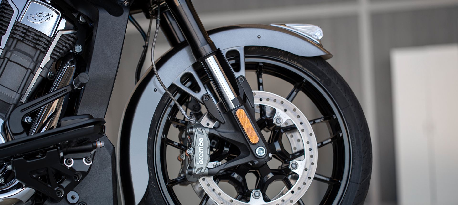 With so much power, stopping power is important. That is why Indian worked with Brembo to create bespoke brakes for the model, with 4 piston dual calipers and discs up front, and 2 piston single caliper and disc out back. Suspension is also reworked, with an inverted fork up front and a hydraulically assisted monoshock at the rear to give the Challenger a sporting but comfortable ride.
