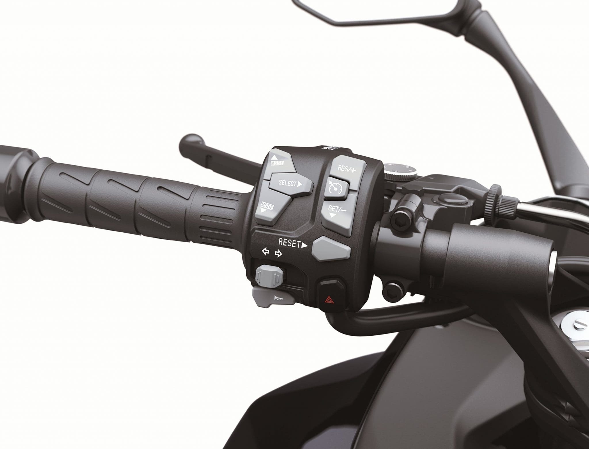 Electronic Cruise Control allows a desired speed (engine rpm) to be maintained with the simple press of a button. Once activated, the rider does not have to constantly apply the throttle. This reduces stress on the right hand when traveling long distances, enabling relaxed cruising and contributing to a high level of riding comfort.