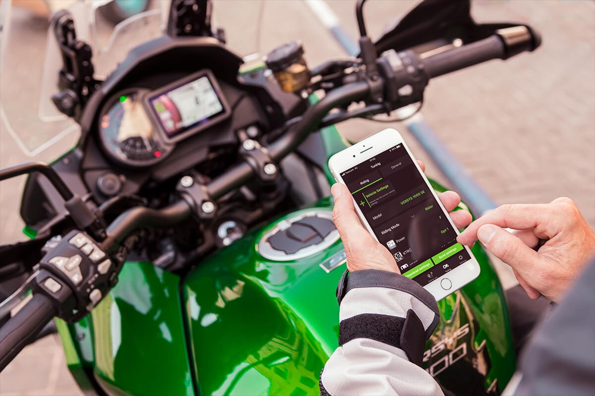 Clever technology enables riders to connect to their motorcycle wirelessly. Using the smartphone application “RIDEOLOGY THE APP,” a number of instrument functions can be accessed, contributing to an enhanced motorcycling experience. Vehicle information (such as the odometer, fuel gauge, maintenance schedule, etc) can be viewed on the smartphone. Riding logs (varies by model, but may include GPS route, gear position, rpm, and other information) can be viewed on the smartphone. When connected, telephone (call, mail) notices are displayed on the instrument panel. Riders can also make changes to their motorcycle’s instrument display settings (preferred units, clock and date setting, etc) via the smartphone. And on certain models, it is even possible to check and adjust vehicle settings (such as Rider Mode, electronic rider support features, and payload settings) using the smartphone.