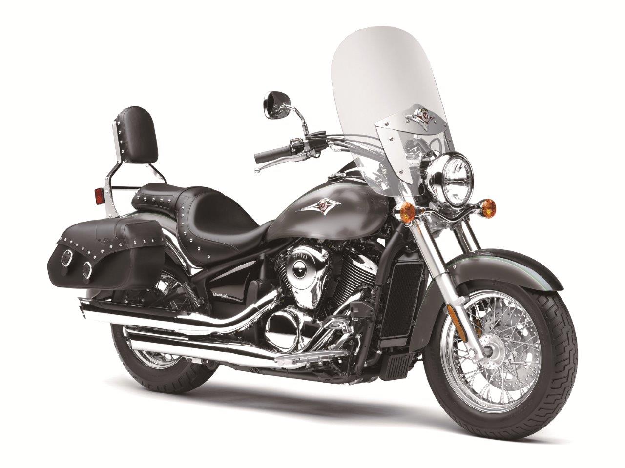 There are three models of the Vulcan 900, of which two, the Classic and the Classic LT, are very close to each other. The 900 Classic feature tank mounted instruments, a 180 mm rear tire, rider floorboards with heel and toe shifters, and a comfortable pillion seat for a passenger. The Classic LT (Light Touring) features all the Classic amenities listed above, but adds a tall touring windscreen, a passenger backrest, leather saddlebags and seat studding to prevent hard wear on long rides.