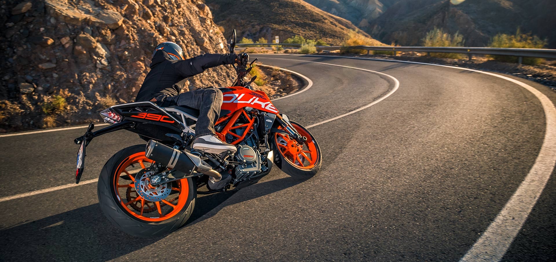 The KTM 390 DUKE comes as standard with ultra-lightweight, high-performance upside-down WP forks. Using the latest open-cartridge technology, these forks not only perform above expectations when pushed to the limits, but are also nice and easy to maintain. This makes them perfect for all aspects of riding, from relaxed cruising to hammering around on closed circuits and everything in between.