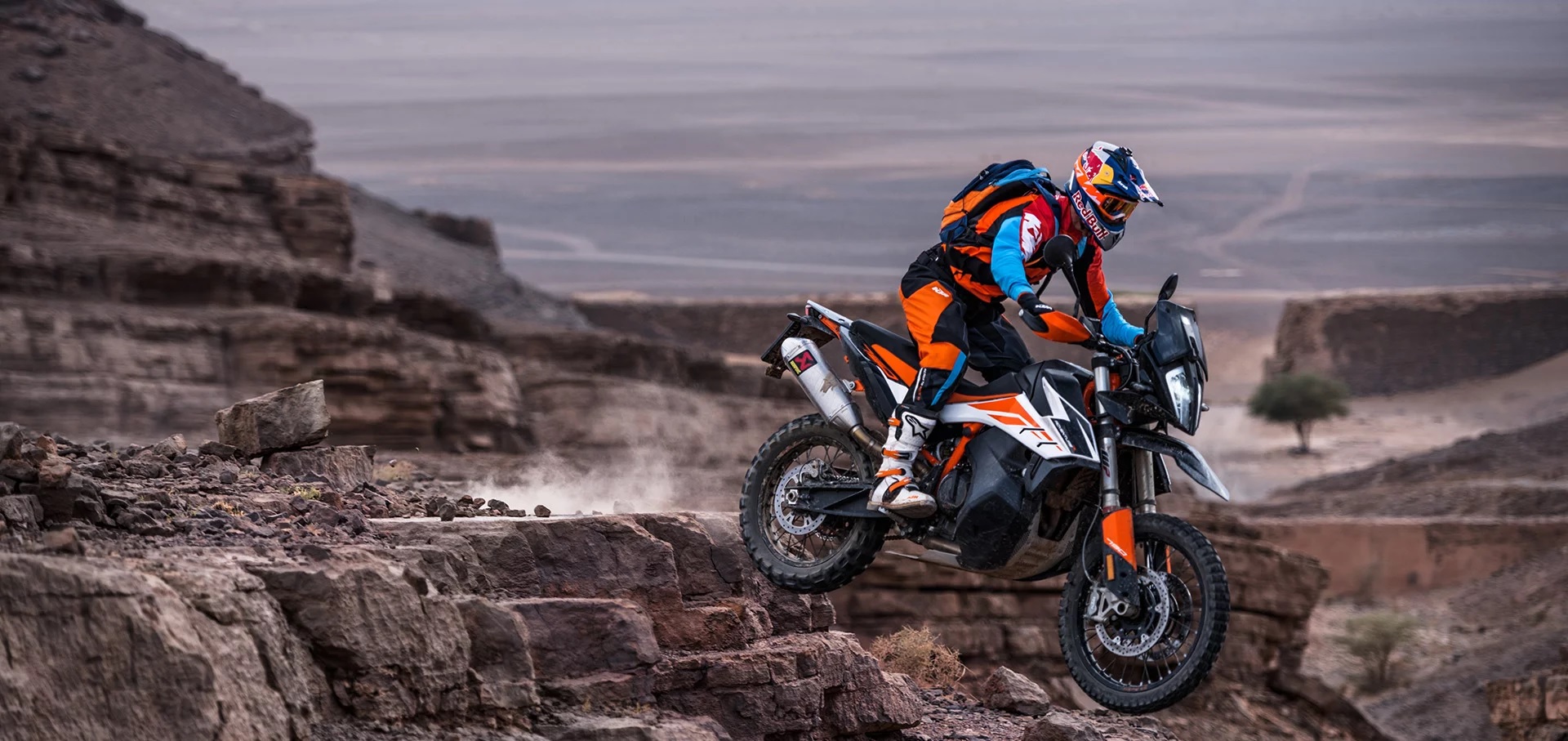Braking demands are very different in sand, mud, gravel or rocks from the predictable grip of asphalt. By selecting ‘offroad ABS’, the ABS function is deactivated on the rear wheel, while the front wheel ABS intervention is reduced and lean-angle sensor data is ignored to accomodate the many potential cornering, steering and control scenarios offroad where the plane of movement might vary (such as leaning into a berm, rut or sand dune). This allows riders to lock up the rear wheel, which can be used to steer into corners, a useful skill for experienced riders seeking to maximize their riding experience offroad. “Offroad ABS” reduces the prevalence of the ABS on the front wheel on looser surfaces, which better balances decent stopping power with secure braking in the dirt. These settings were developed for maximum braking power with minimal electronic intervention in all scenarios. If you’re going offroad, use this mode to unlock the full dynamic riding potential of your KTM 790 ADVENTURE R on the most adventurous terrain.