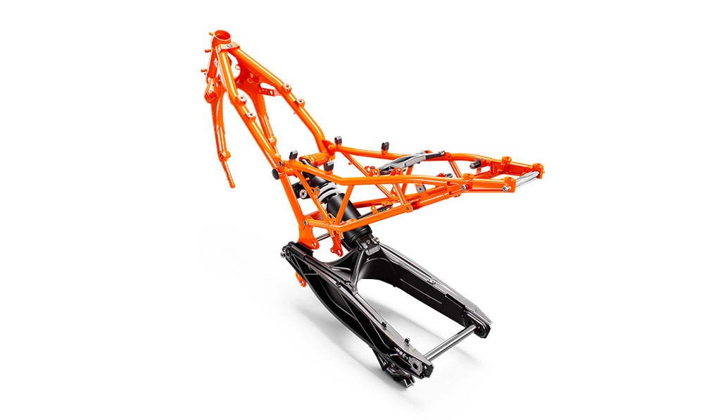 The signature die-cast, open-lattice swingarm is precisely manufactured and has been optimized for stiffness and stability while still offering excellent flex characteristics. By using a direct link for the rear shock, complexity and parts are reduced. The relatively long swingarm aids in traction, stability and suspension setup.
