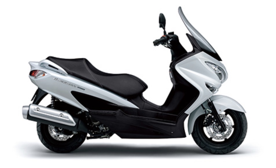 The telescopic oil-damped front fork and swingarm-style rear suspension make the Burgman’s ride sporty and smooth.