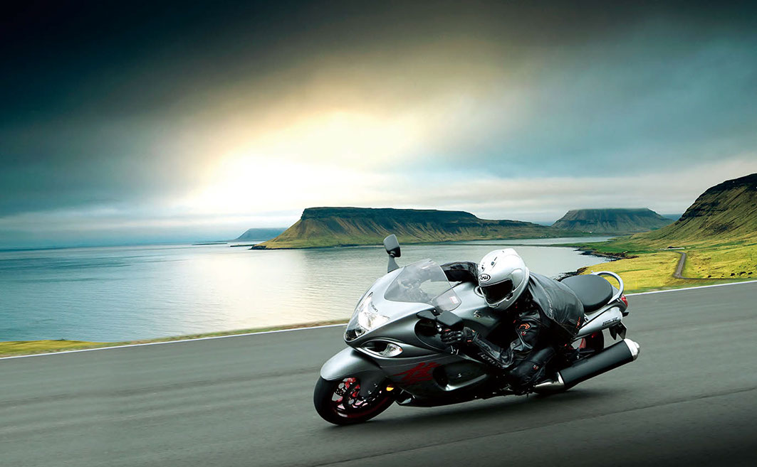 Radical aerodynamic styling and smooth bodywork provides the Hayabusa its distinctive look, protects the rider from the wind, and improves fuel efficiency.