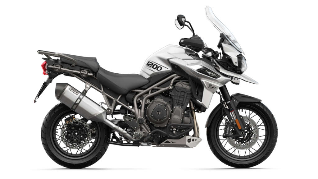The top spec Tiger 1200 XCa adds adaptive cornering lighting, clutchless shifting up and down, a titanium lightweight Arrow exhaust, and LED lights all around.