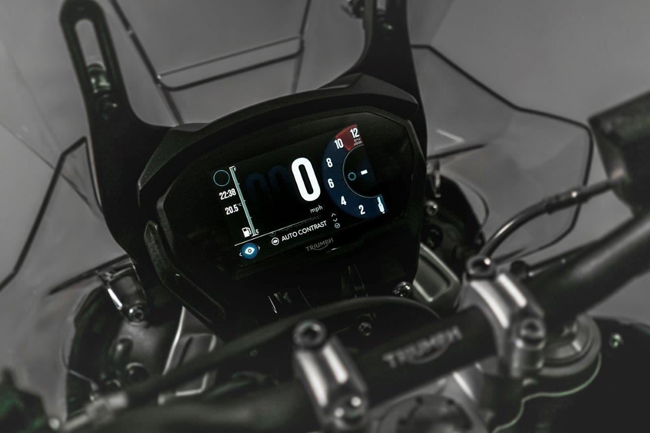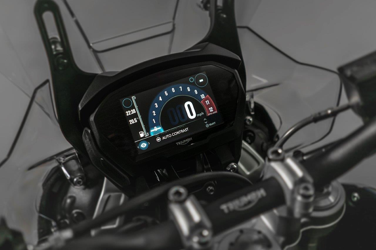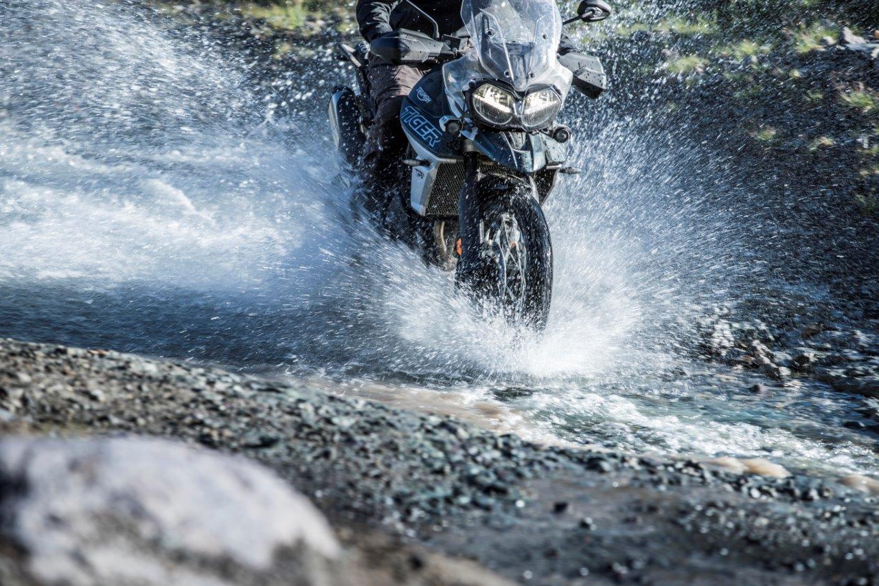 The Tiger 800 XCx is the base model here, with a slew of features designed to devour landscapes. WP front and rear shocks are fully adjustable, the ergonomics are adjustable to make the bike fit perfectly, and a 5 inch TFT gets you the information you need on the spot. LED daytime running lights keep you visible, and adding to the safety are off-road rated Brembo premium brakes. Built in handguards, an aluminum sump guard, and a radiator guard are also standard.