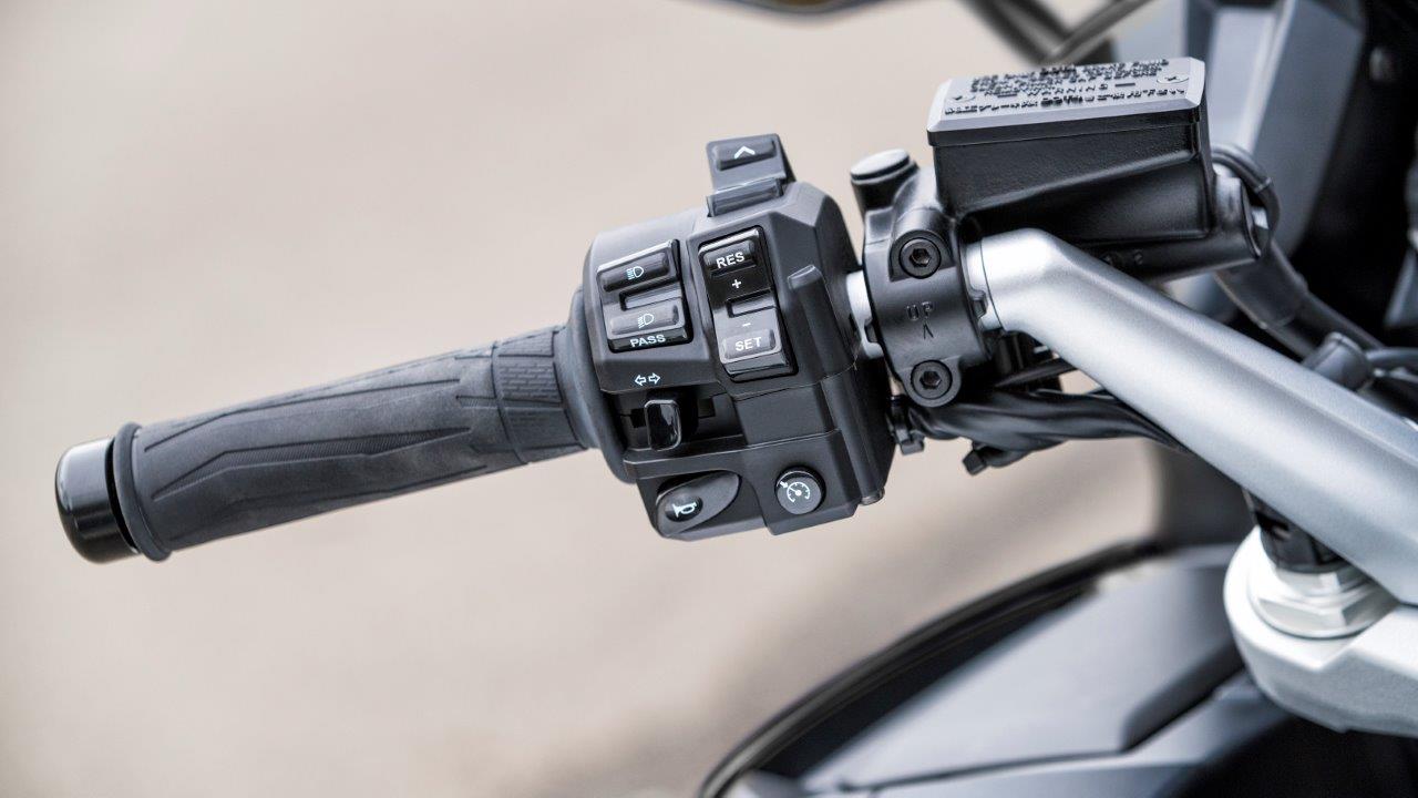 Cruise control makes touring a breeze, adjusting a set speed via a single push to the switch or, for larger adjustments, by continuously pushing the switch. A resume function returns the cruise control to the most recent setting while activating the brakes, clutch or throttle return releases the cruise control.
