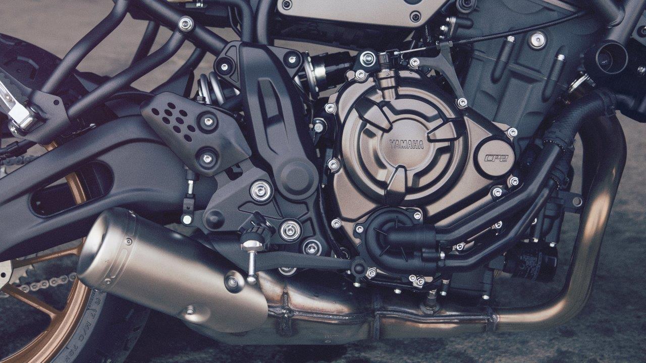 The XSR700 features a compact 689cc liquid-cooled, inline twin-cylinder, DOHC engine with fuel injection. This engine provides a unique power character, with outstanding low- to mid-range torque and very linear throttle response, combined with strong high-rpm pulling power. This motor develops 50 foot-pounds of torque and is designed to maximize riding excitement in the real world.