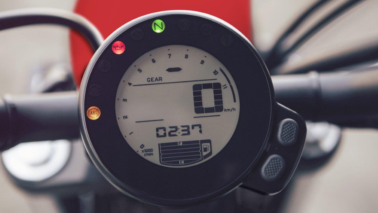 The new round LCD panel features a ton of information: digital tachometer, speedometer, gear position, eco mode indicator, ambient and coolant temperature, a fuel gauge and range of trip computer functions, including a clock, instant, and average fuel consumption, fuel reserve trip meter and the usual trip meters.