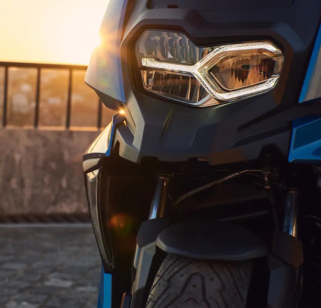 As its design suggests, the C 400 X mid-size scooter is made for the city – light and easily maneuverable. The implied V-shape of the trim components makes it appear dynamic and mobile when viewed from the front – a silhouette that emphasises that the C 400 X is superior in tight alleys and dense traffic. In addition, the C 400 X also features the robust and reliable spirit of the GS: the upright proportions, the front mudguard, the clear, graphic separation of the painted trim components and the large asymmetric headlight with full LED front lights are characteristics that can be traced to the GS. However, the trim components don’t just highlight its urban style, they also protect you from wind and bad weather. Its slender rear also makes a statement.
