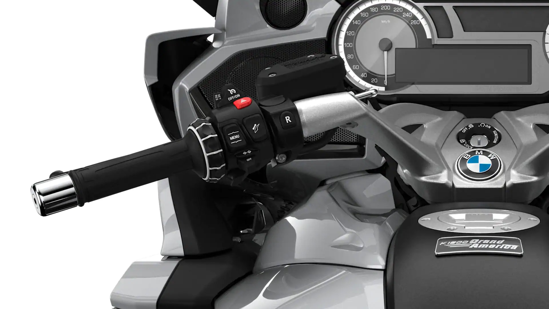 For 2021, the K 1600 Grand America is available in three color options: Hockenheim Silver Metallic, Mars Red Metallic, and Black Storm Metallic.
