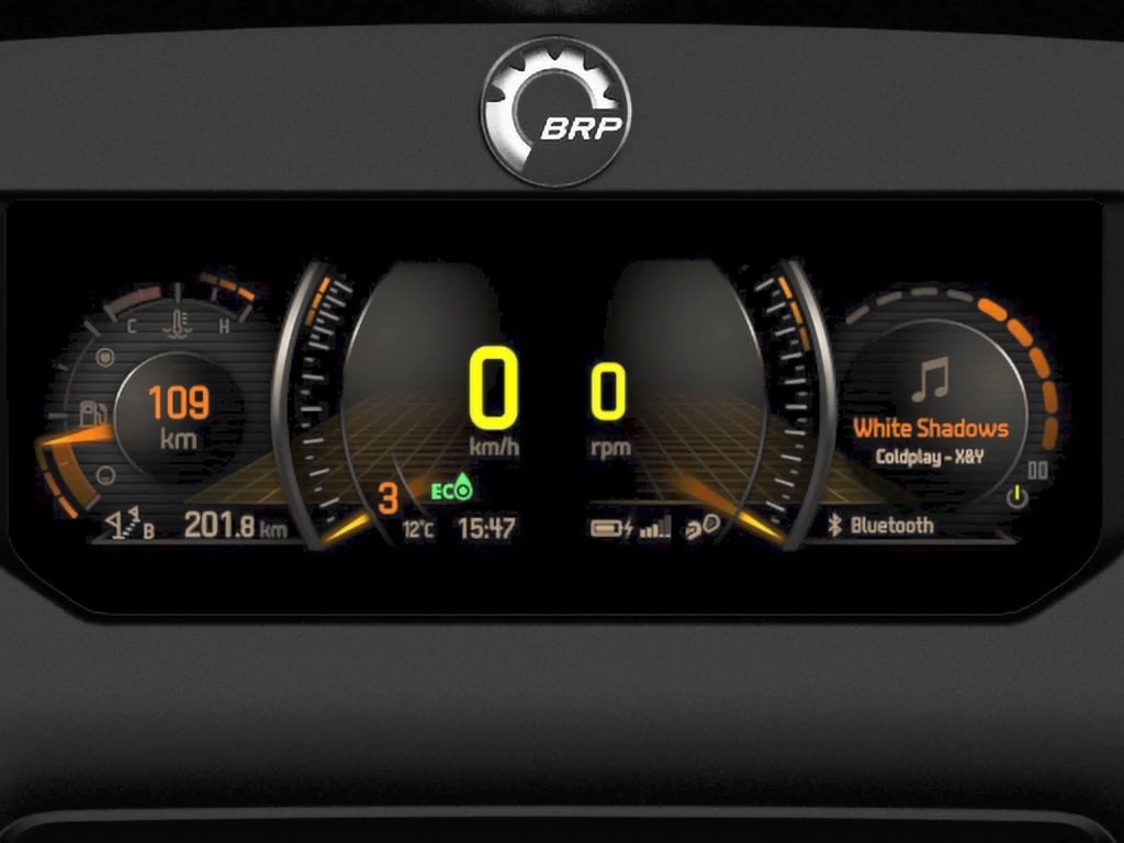 As a touring motorcycle, it comes equipped with a range of riding aids including stability control, traction control, dynamic power steering, and ABS, along with a number of other premium features. These include BRP Connect technology, a six-speaker audio system, and a panoramic LCD dashboard with integrated navigation and vehicle app connectivity.