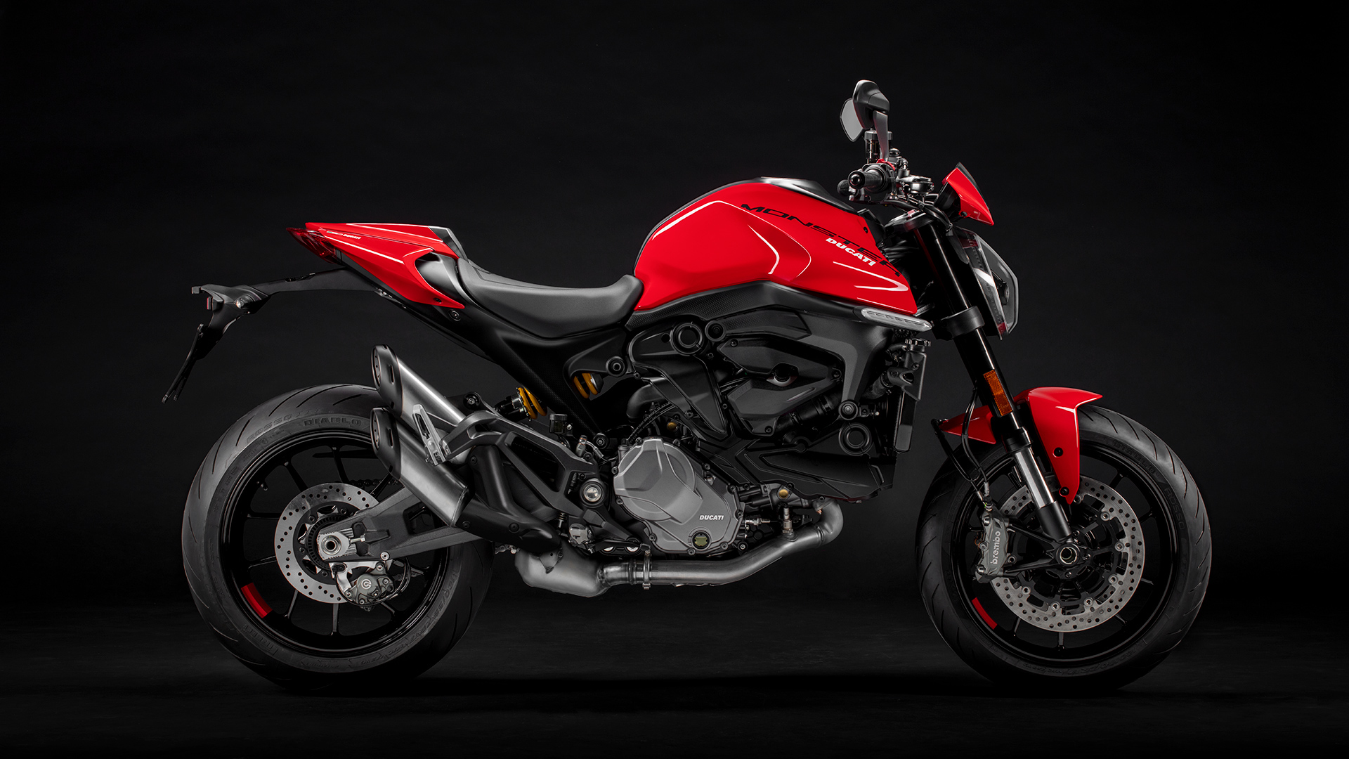 For 2021, the new Monster Plus is available in three color options: Ducati Red, Aviator Grey, and Dark Stealth.