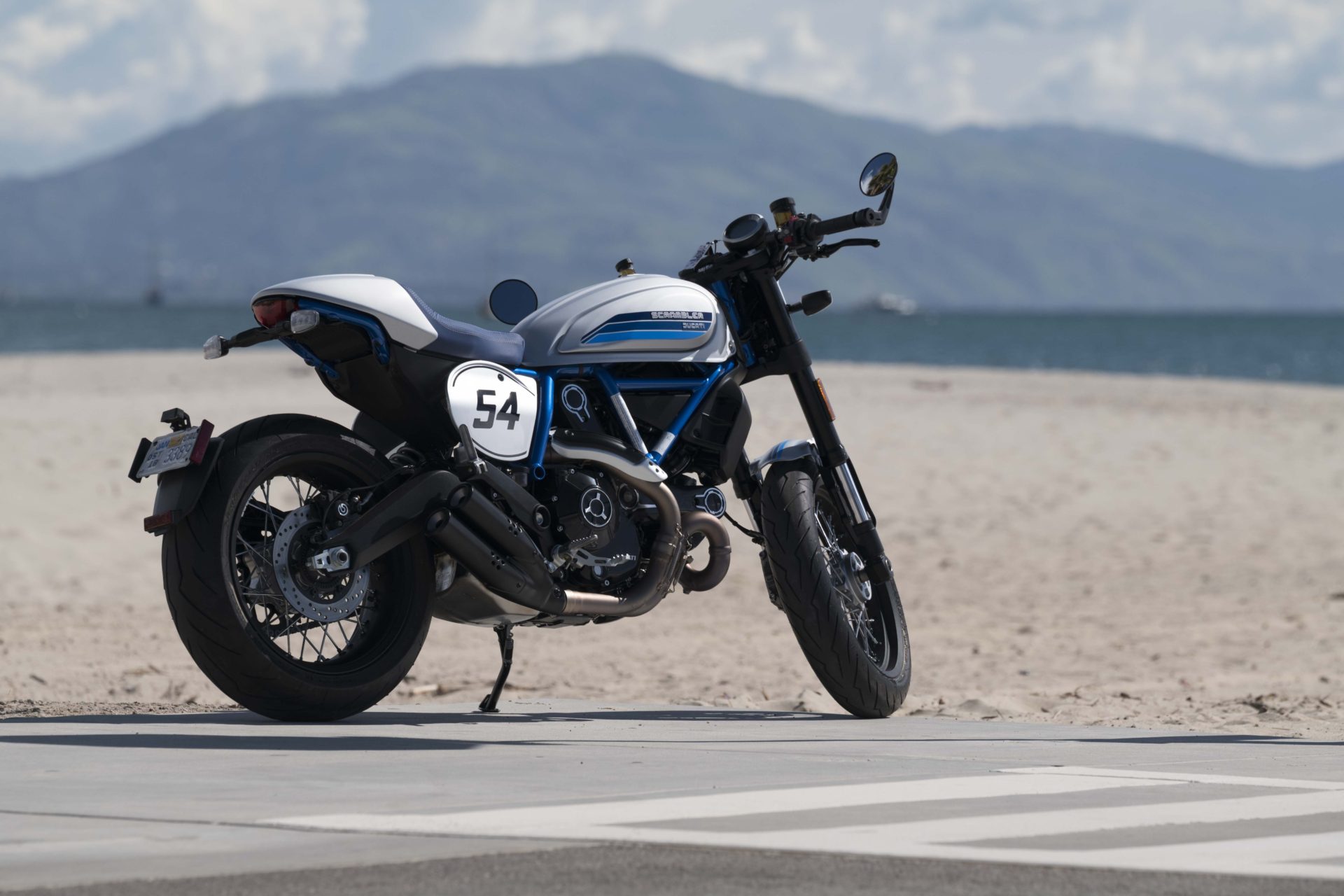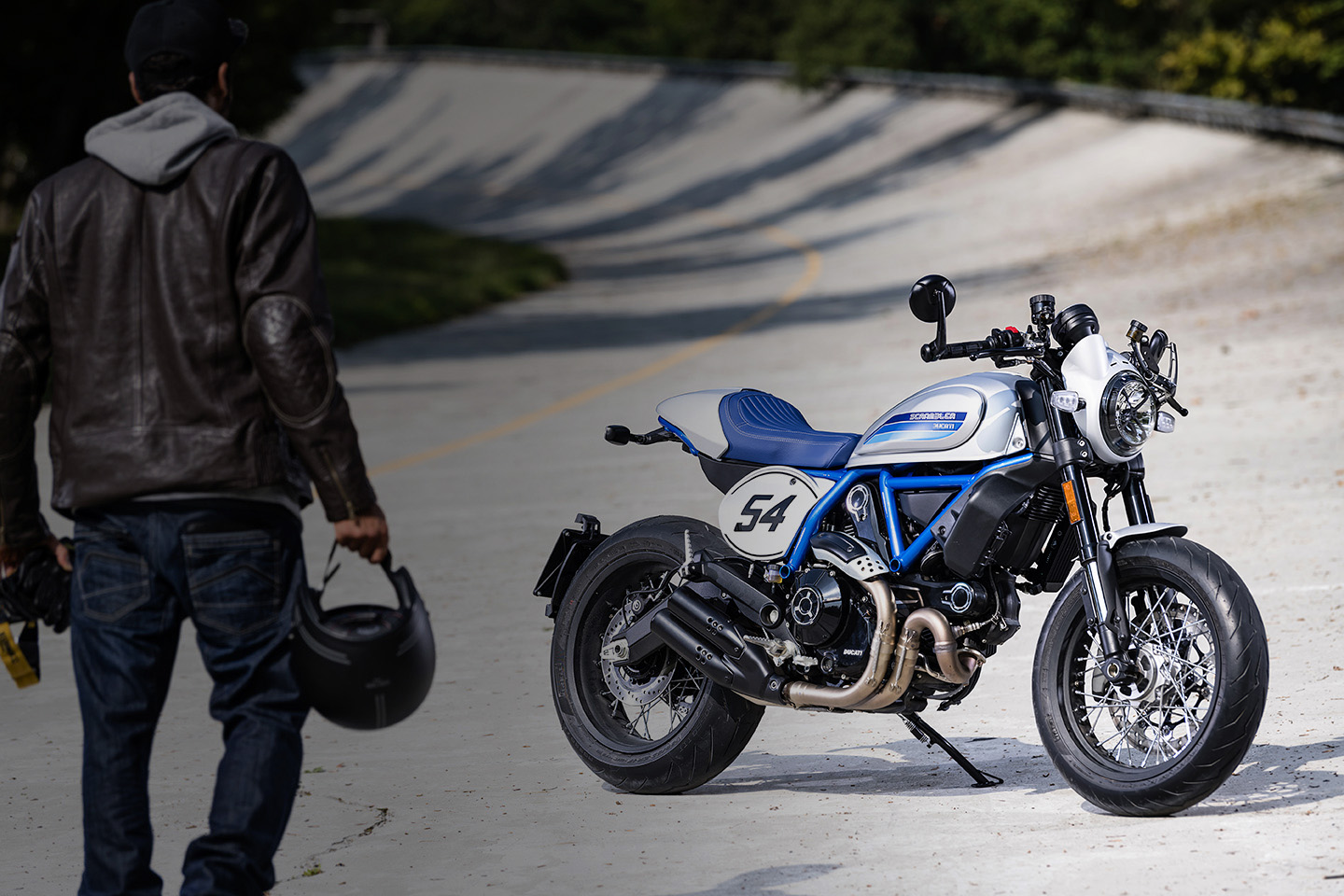 For 2021, the Scrambler Cafe Racer is available in a unique blue and silver “Silver Ice Matt” color option.