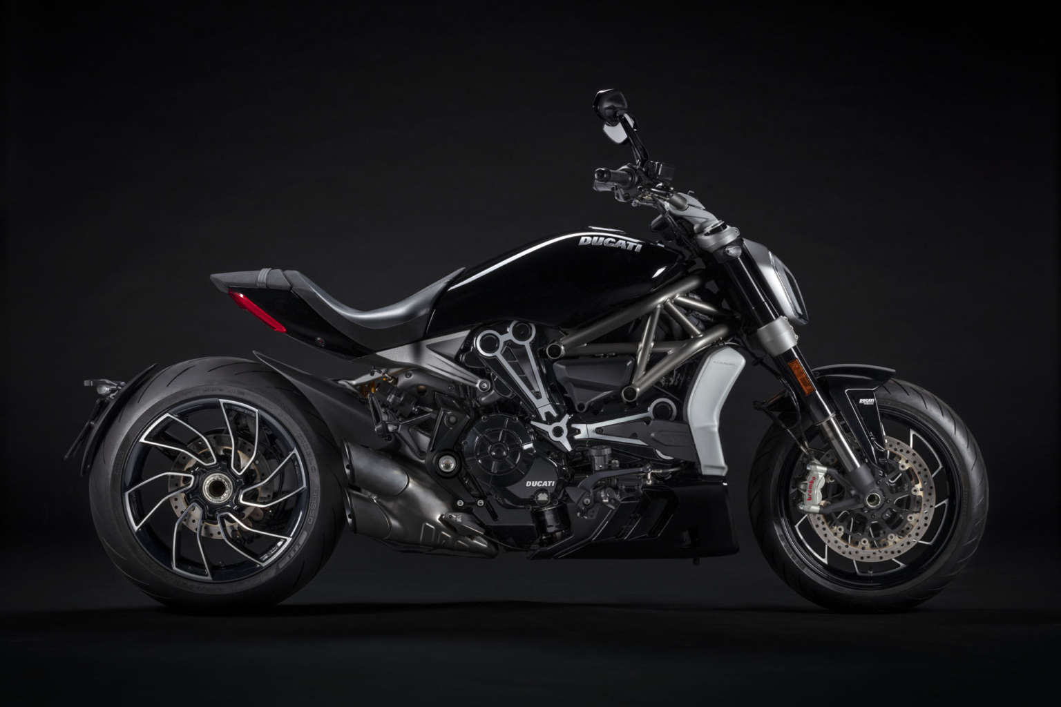 For 2021, the XDiavel S is available in Thrilling Black with matt black and red trim, complemented with a grey frame and blacked-out wheels.