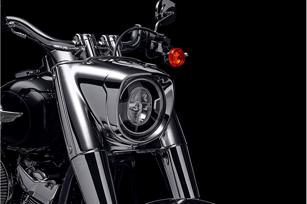 The iconic steamroller stance of the Fat Boy begins with the solid disc Lakester wheels wrapped in fat rubber, 160mm up front and 240mm out back. Such massive rubber is needed in order to harness the power from the Milwaukee-Eight® 114 engine and its 119 lbs-ft of torque.