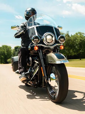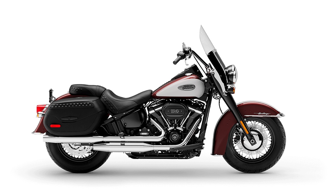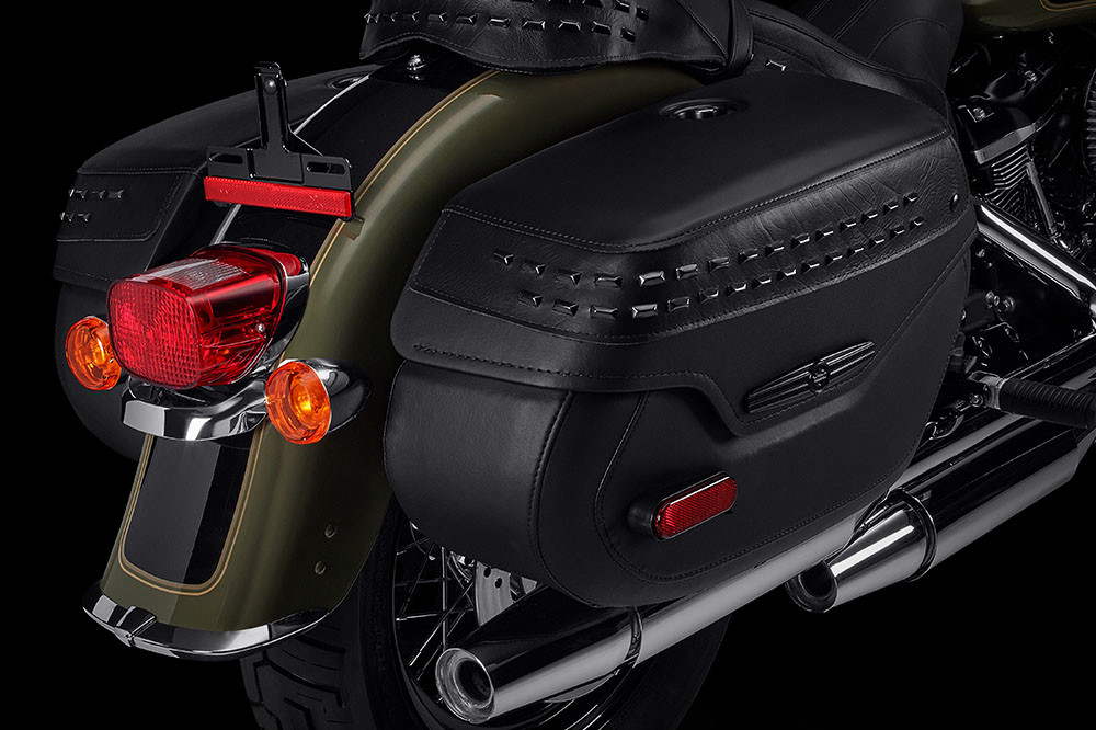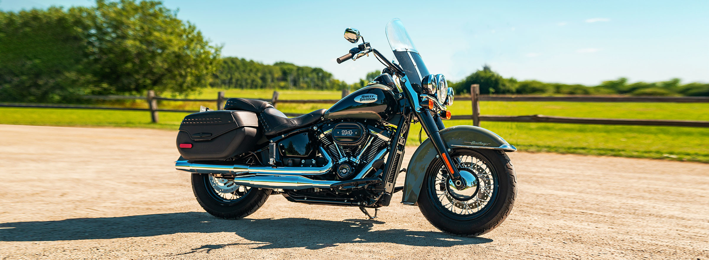 Harley Davidson offers endless ways to configure your Heritage Classic. Choosing either the Milwaukee-Eight® 107 with chrome finishes or the Milwaukee-Eight®114 engine with black finishes. One-touch opening soft saddlebags, a removable windscreen, full fenders, and classic wire wheels finish the look of this Softail.