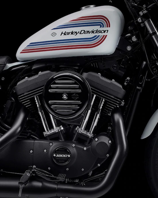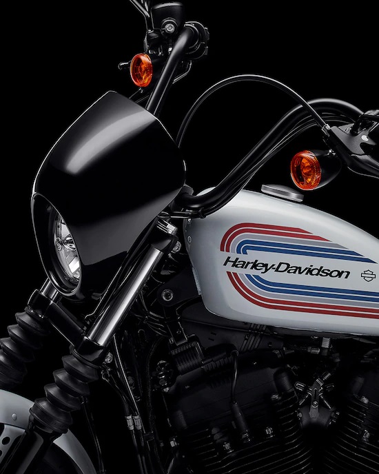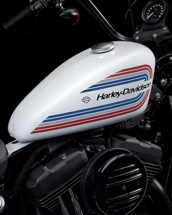 Harley Davidson has reached back to the ’70s for the throwback paint schemes, which pair well with the small bits of brightwork on the engine and the 9 spoke machined rims.