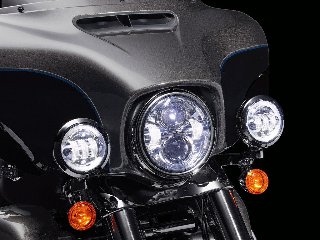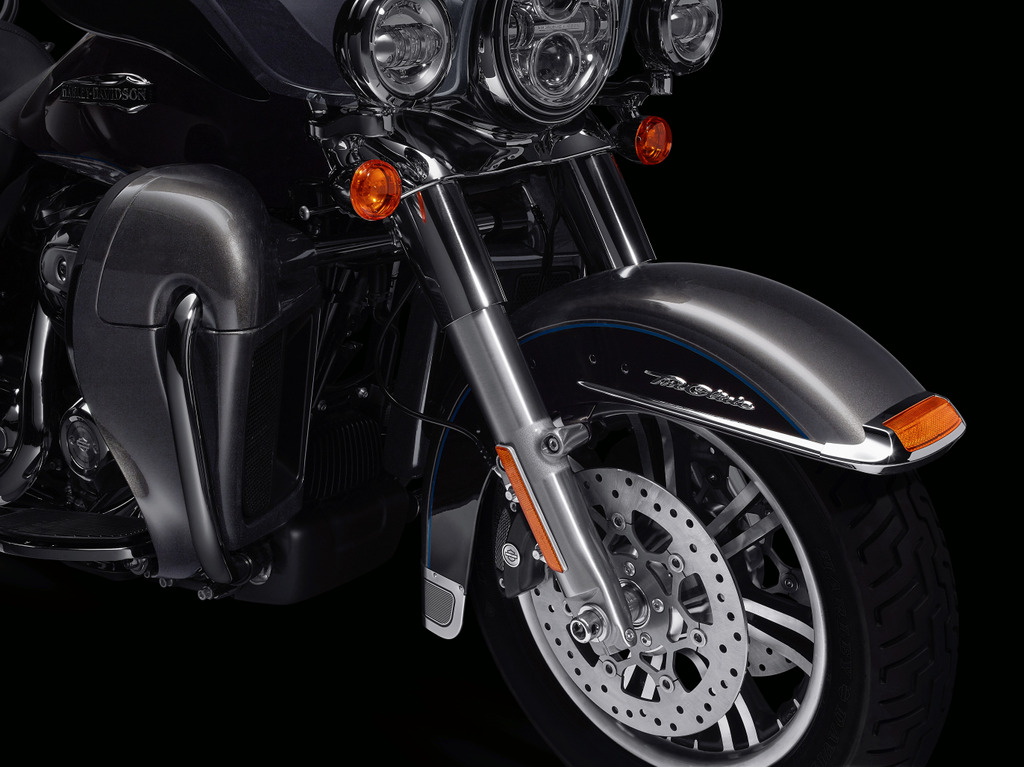 The Tri Glide showcases HD’s high level of build quality with premium paint finishes including two-tone options, Daymaker® LED headlamp and LED foglamps, and unique Tomahawk™ wheels.