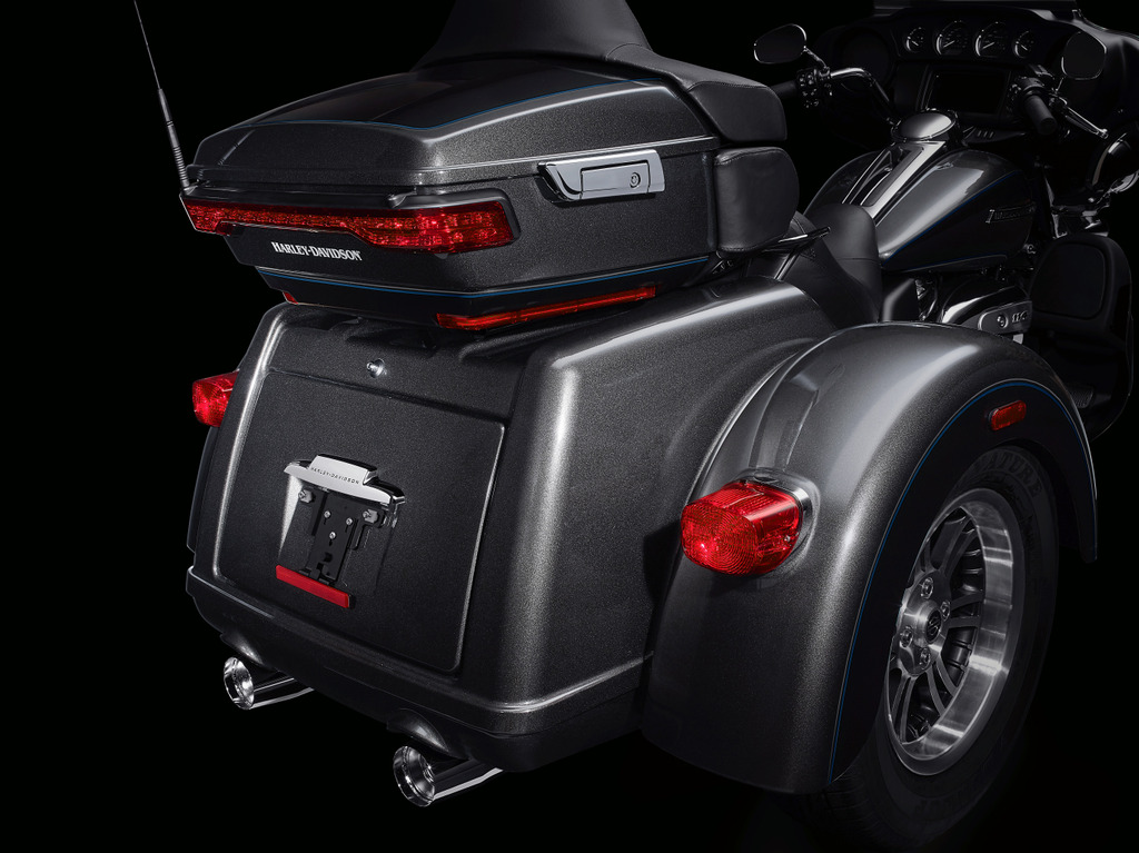 One of 3 Trikes in the 2021 Harley Davidson lineup, the Tri Glide Ultra packs The Milwaukee-Eight® 114 engine pounds and its 118 lbs-ft of torque. Behind the iconic Batwing fairing, the rider is treated to Reflex™ linked brakes with ABS, an all-new 4-speaker BOOM!™ GTS infotainment system, electronic cruise control, and 6.8 cubic feet of storage space.