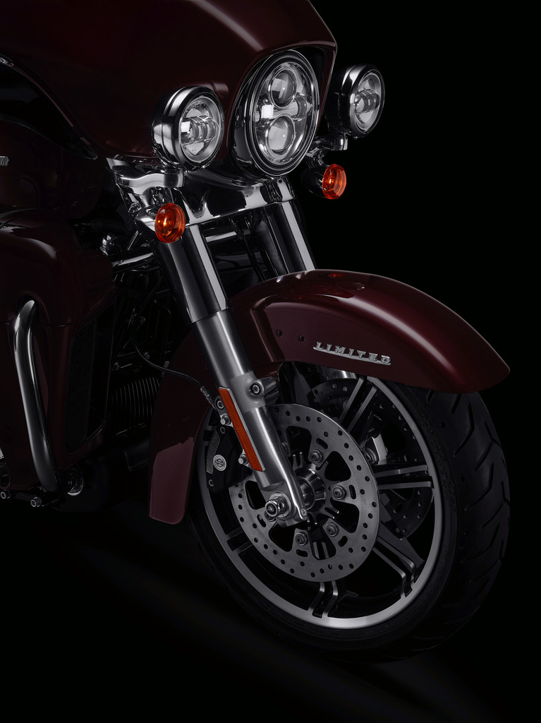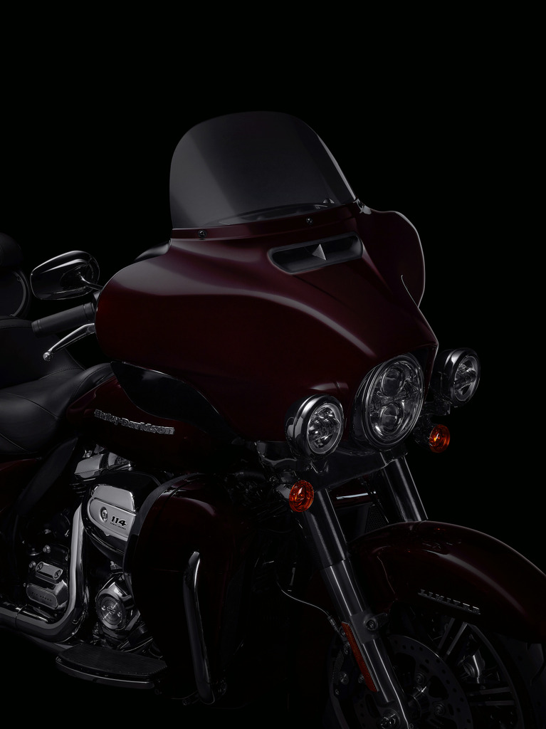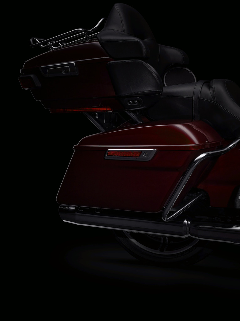 The sleek yet spacious Tour-Pak™ luggage carrier with luggage rack that can easily house both rider and passenger helmets along with extra travel essentials. Comfort features like heated grips and cruise control are standard, the Reflex™ Defensive Rider System is an option, but let’s face it, you know you are adding those very useful electronic rider aids, they are well worth it. The toughest choice you will face ordering your new Ultra Limited is solid color or two-tone, and more chrome or more blacked-out?