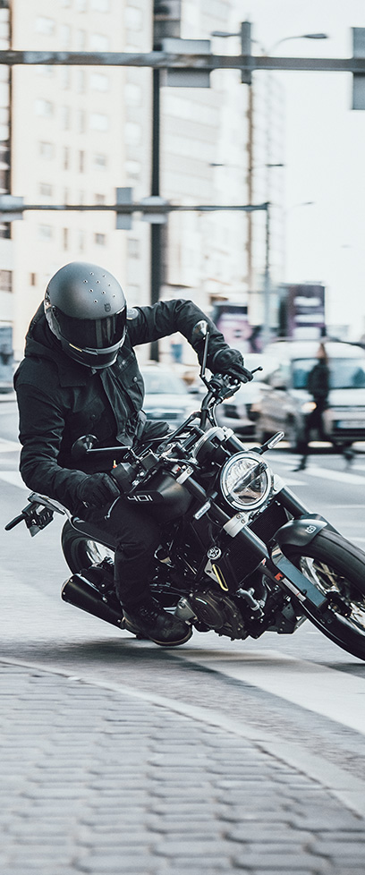 Reduced to an authentic mix of classic thinking and modern design. This Svartpilen 401 is synonymous with the Swedish heritage of Husqvarna Motorcycles. The lightweight and narrow bodywork is shaped into the Svartpilen 401’s design and intelligently allows for seamless movement while riding. Its dark colour, rugged tyres and protective parts give the motorcycle a rigorous look to match its urban exploration intentions.</p>