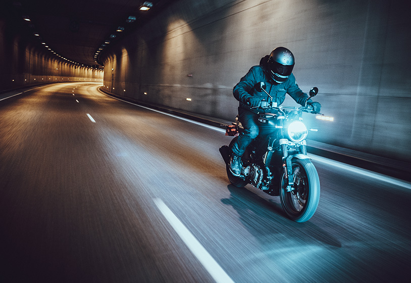 The engine is held in place with a sophisticated trellis frame made from hydroformed chromium-molybdenum. Other highlights of the rolling chassis include WP Apex suspension, ByBre brakes, a set of 17” spoked rims, and distinctive LED lighting. Aluminum components, ABS, and an unforgettable aesthetic, all feature as standard.