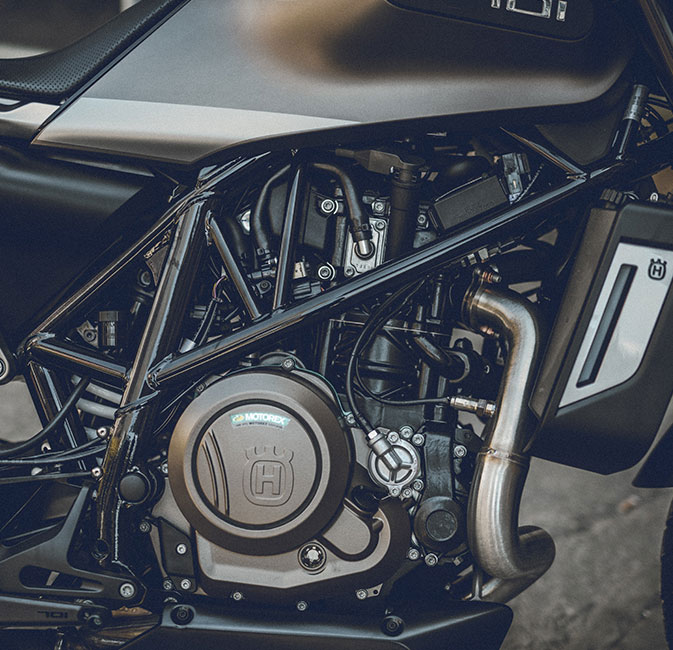 The Svartpilen 401 is powered by a modern 373cc single-cylinder engine that is remarkably compact. With 37Nm of torque from low down in the RPM range and a 6-speed gearbox, it is perfect for urban riding. The electronic fuel injection is operated by a ride-by-wire system and delivers a controlled and refined power. With a peak horsepower of 32 kW (44 hp), the SVARTPILEN is accessible to a wide variety of riders, while its lightweight construction means the power-to-weight ratio will also excite more experienced riders. For added convenience, the gearbox is linked to an easy shift sensor which allows the rider to make seamless up and down shifts without the use of the clutch. The sensor works by relaying the moment the rider actuates the gear lever to the ECU which in turn matches engine parameters to allow a simple gear change at any RPM or engine load.