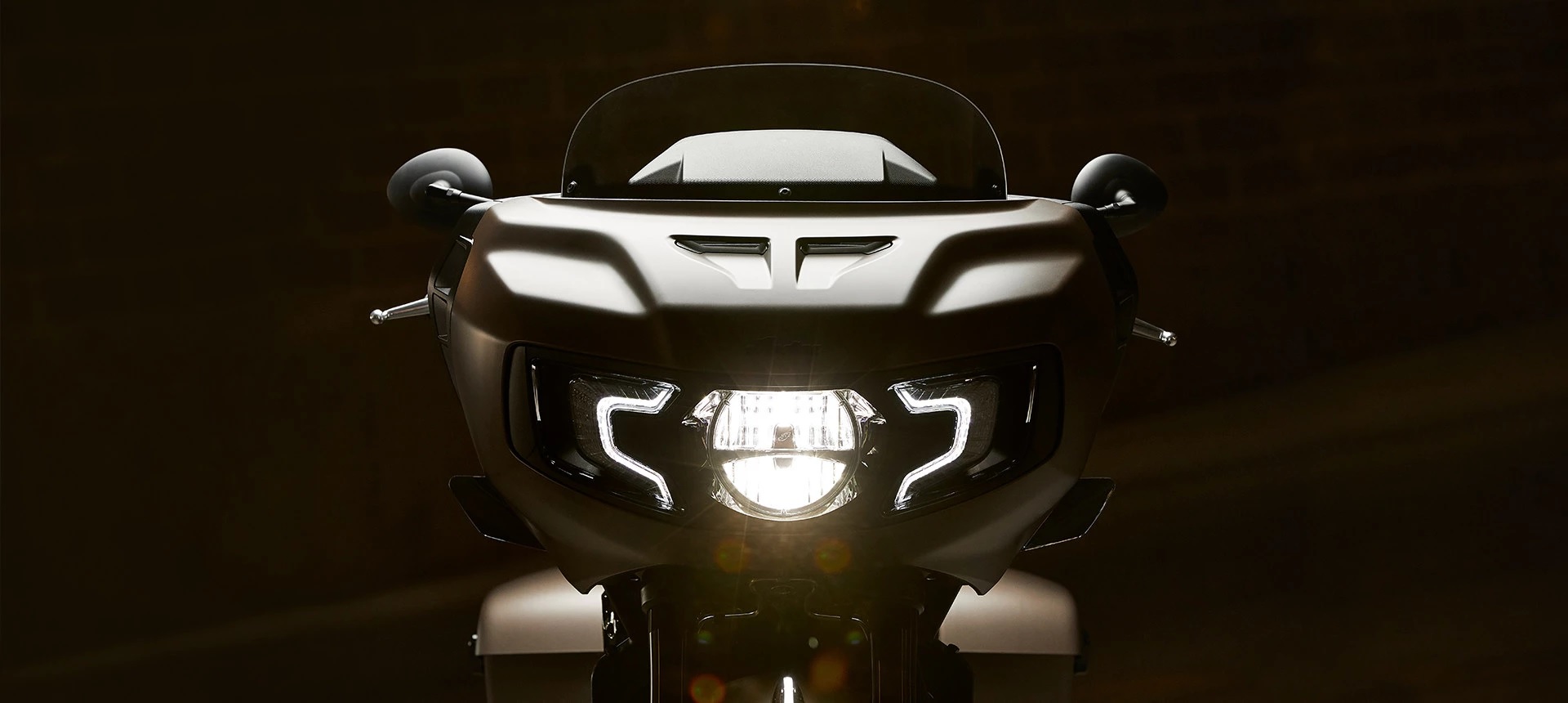Aggressive fairing design with full LED lighting and menacingly styled running lights provide a signature face that leads the way in both style and function.