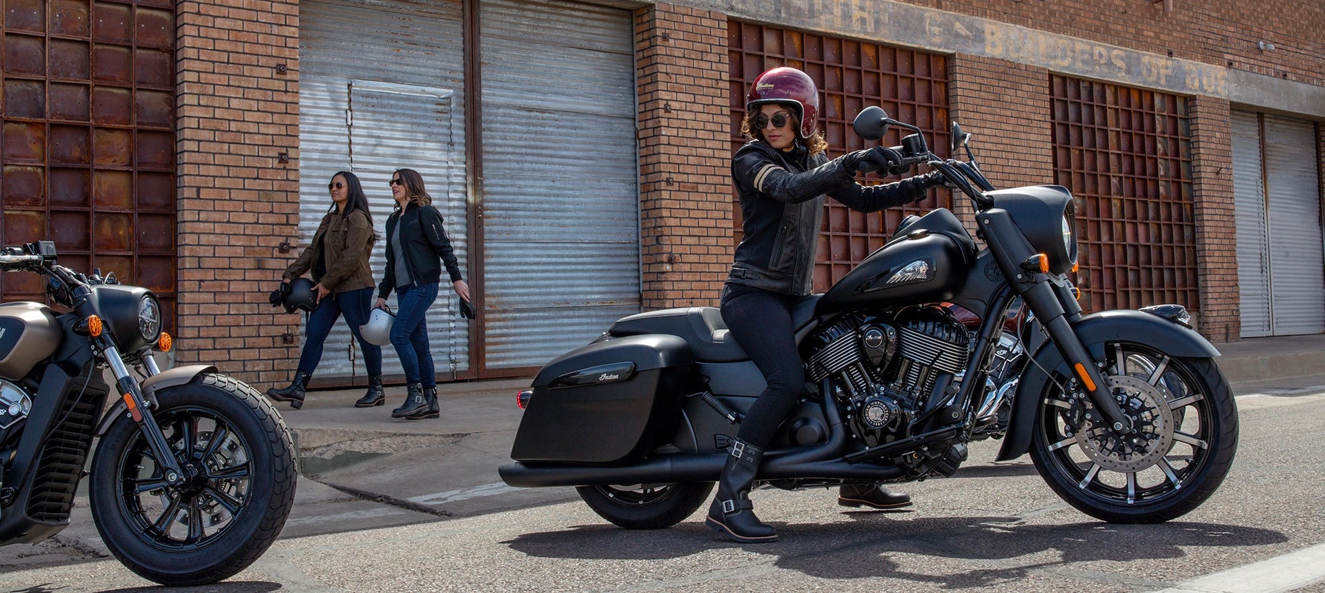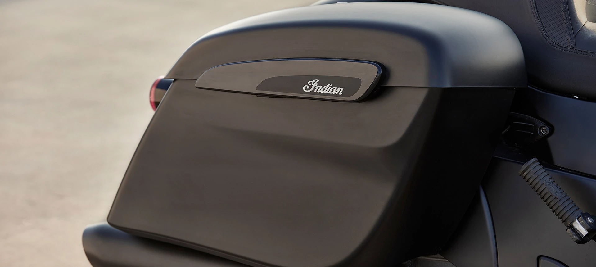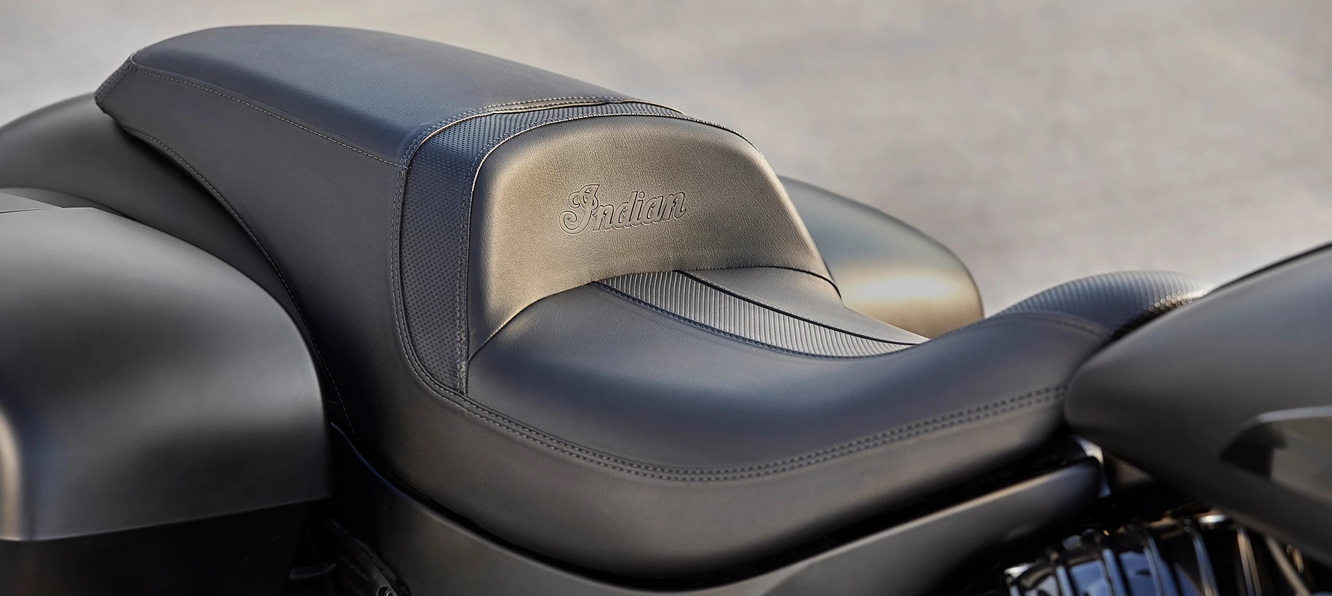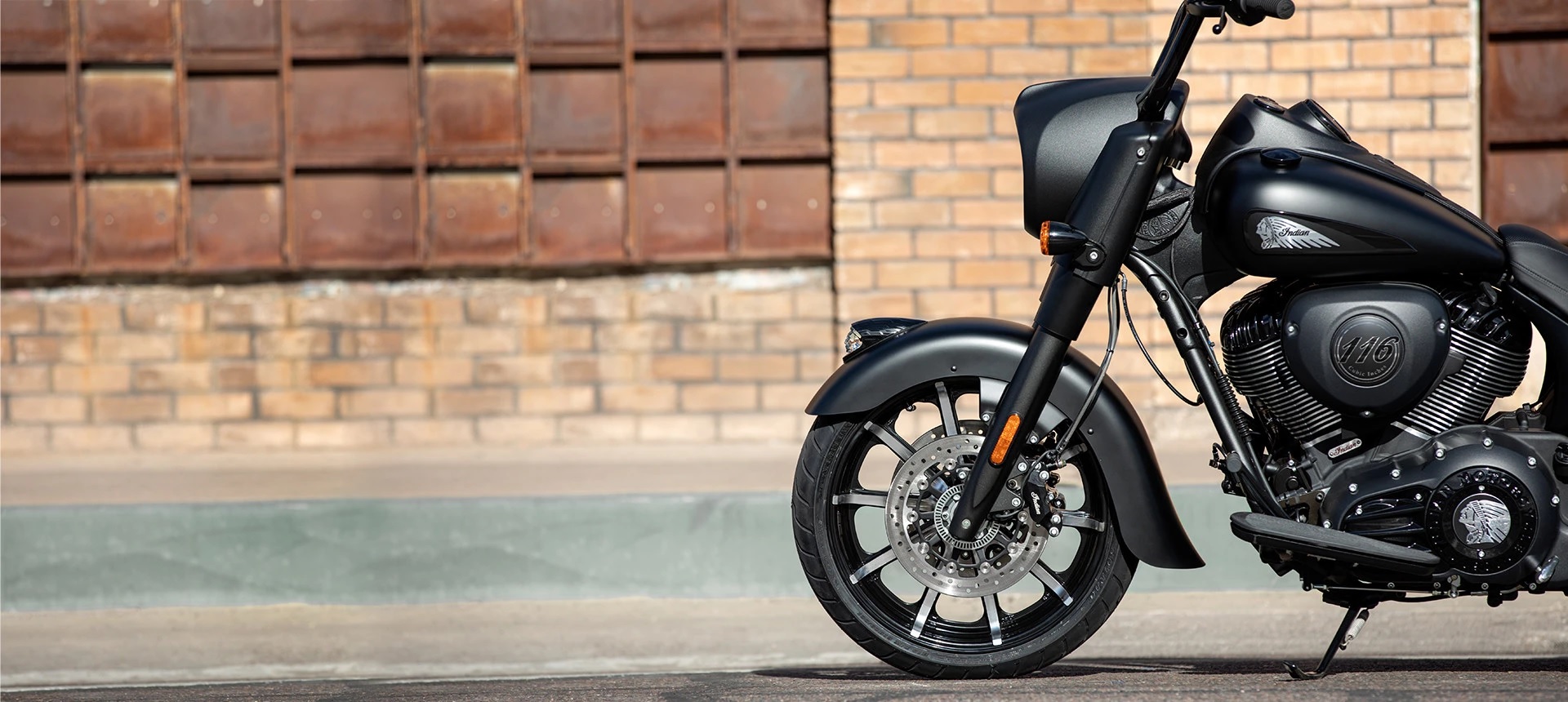 The Indian Springfield Dark Horse comes loaded with ride-enhancing features like, tire pressure monitoring, cruise control, and keyless ignition. Model shown with accessories.