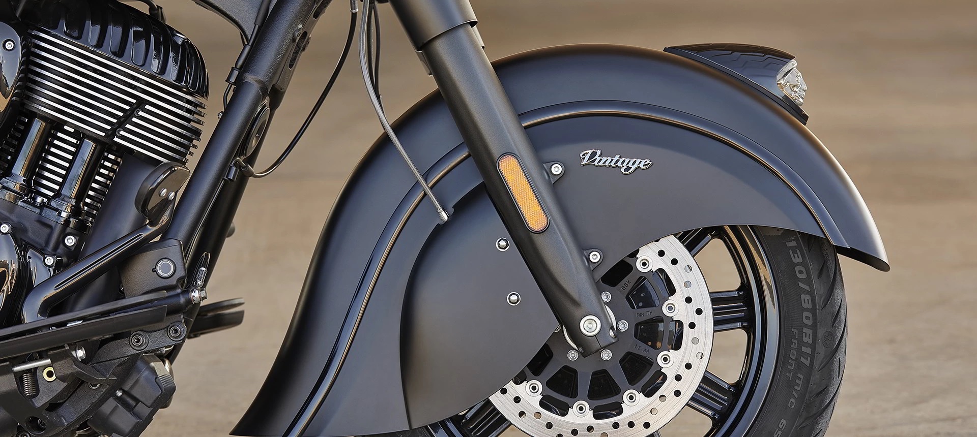 Easy to handle and effortlessly balanced, the Indian Vintage Dark Horse makes quick work of corners with its lightweight cast aluminum frame and improved touring design.