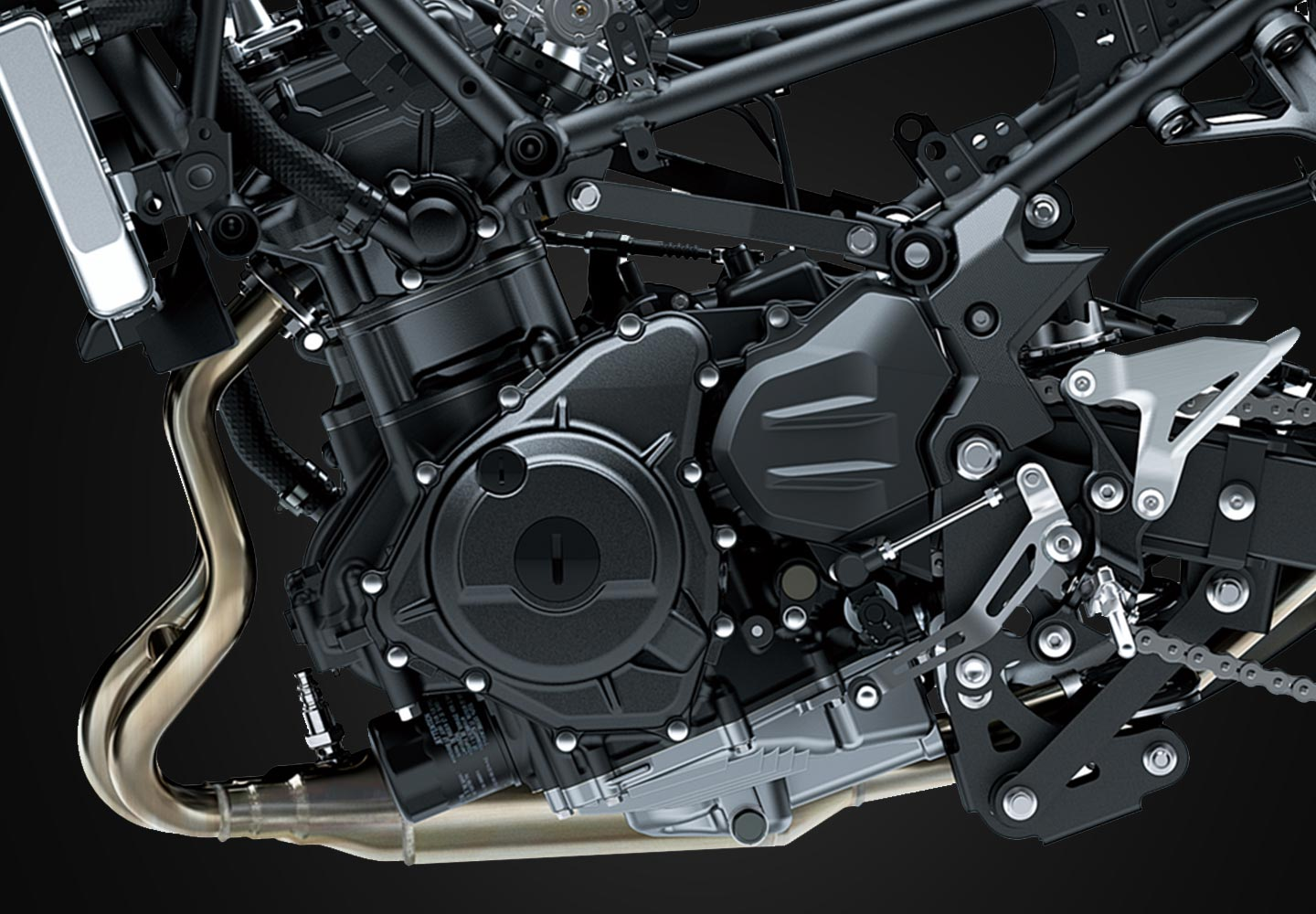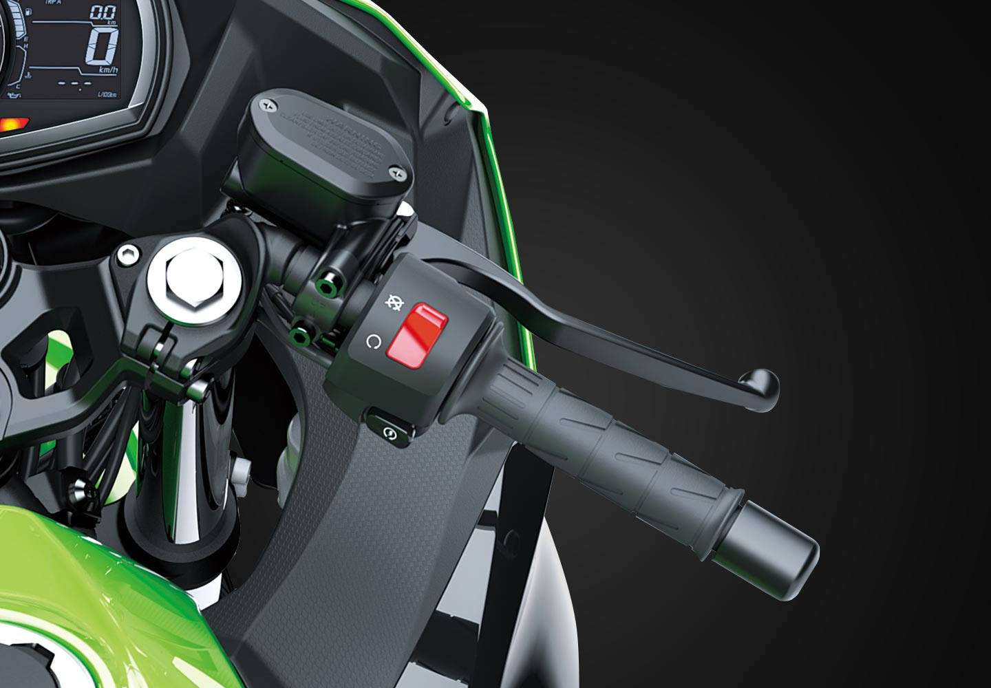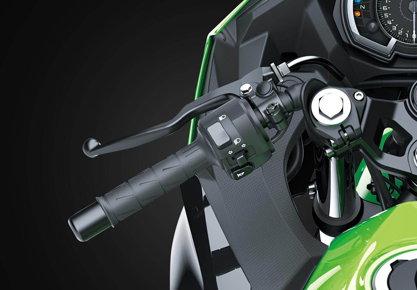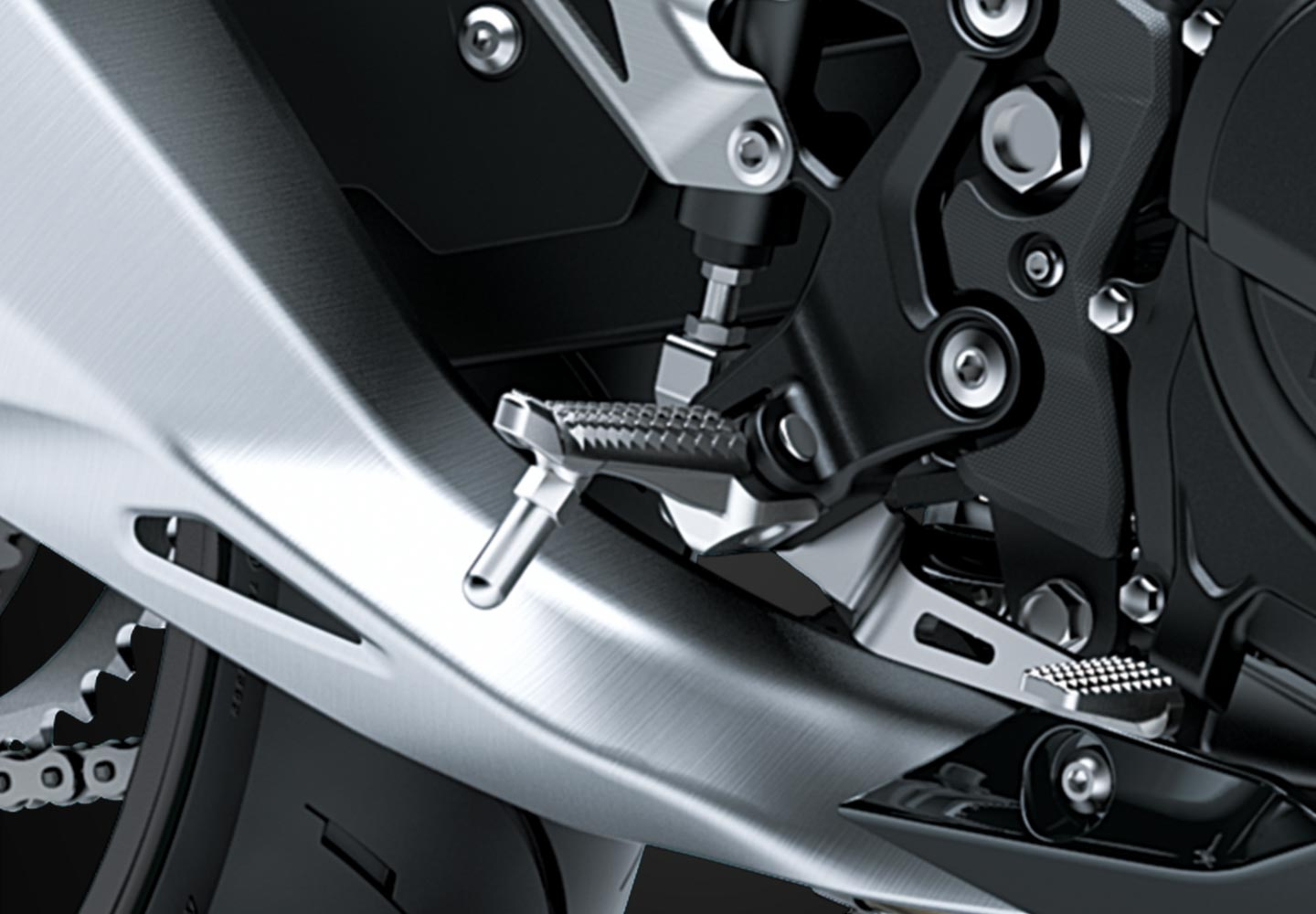 ERGO-FIT® is an interface system designed to allow riders to find their ideal riding position. Various points of the chassis interface (the handlebar, footpegs and seat, etc.) can be adjusted through a combination of interchangeable parts and parts with adjustable positions. This enables a wide range of riders to find a riding position that offers both comfort and control. Feeling at one with their machine, they will be able to experience how Kawasaki machines are fun and rewarding to ride.