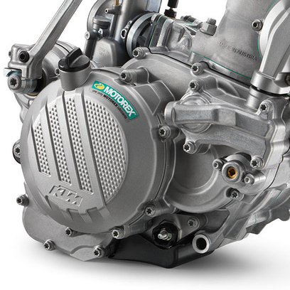 The compact engine cases are manufactured using a high pressure die-cast production process which helps with weight reduction, while retaining strength and durability. The design allows for optimal shaft arrangements close to the center of gravity, resulting in ideal mass centralization and easier ride-ability. The engine covers feature a smart surface structure which reduces wear caused by the rider’s boots, keeping them looking as fresh as the day you bought your XC TPI.