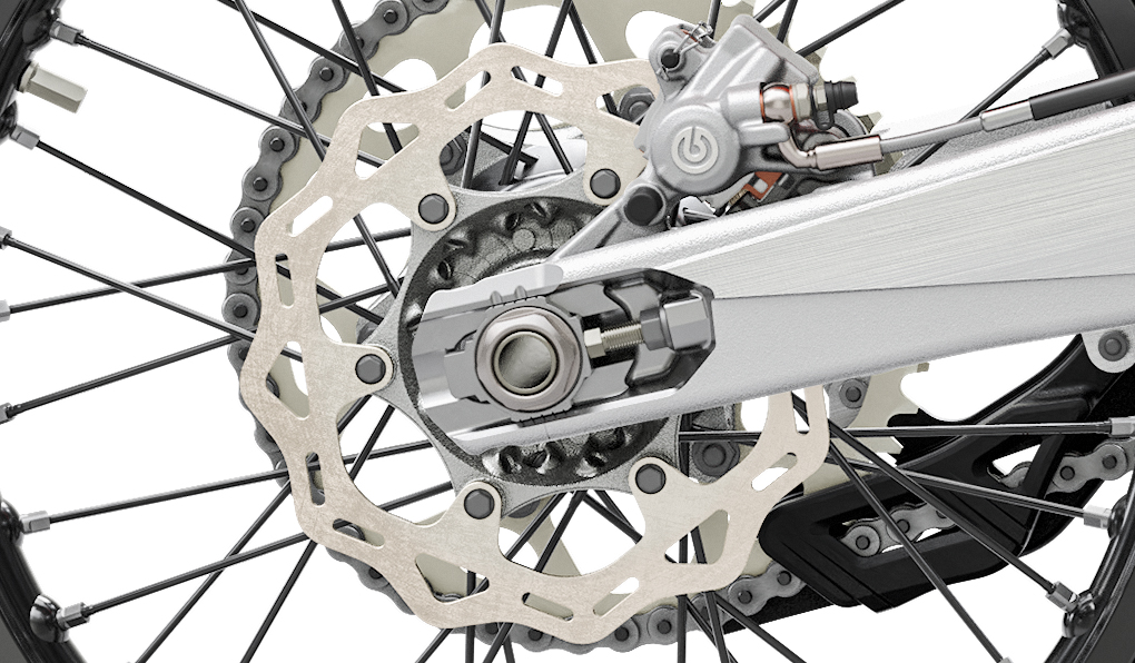 The robust 6-speed transmission made by PANKL Racing Systems features an Enduro-specific wide-ratio specification and provides precise and easy shifting. An advanced ´No Dirt´ gear shift lever design prevents mud and dirt from blocking the joint. Because even dirt lovers hate mud when it’s in the wrong places.