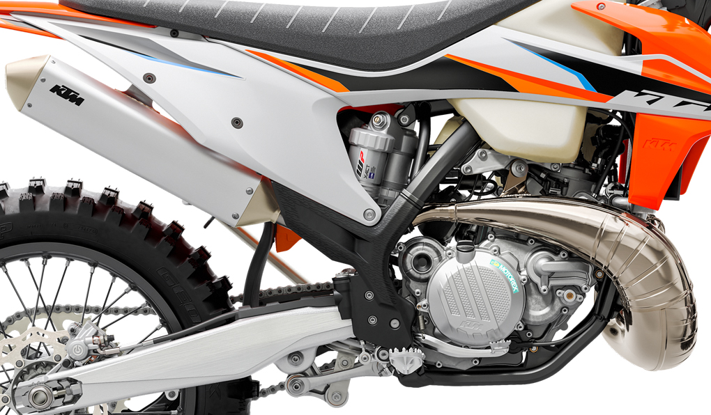 The Austrian company first brought it out in the 250 XC TPI from 2018, and the second generation development has allowed for it to be refined with tighter ECU maps and more effective fuel injection. For the 250cc two-stroke at the heart of the enduro, it means clean, consistent power, usually to the tune of between 50 and 60 HP.