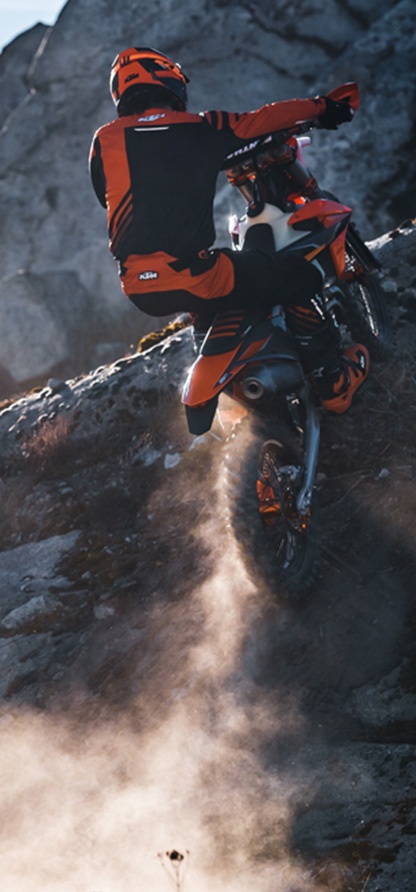 Compact dimensions with an unbelievable power output, the KTM 350 EXC-F’s fuel-injected DOHC engine offers the best power-to-weight ratio on the market. Its class-leading power delivery is available throughout the entire rev range and the light weight of just 61.7 lbs, makes it almost as light as a 250, while offering power and torque closer to a 450 cc.