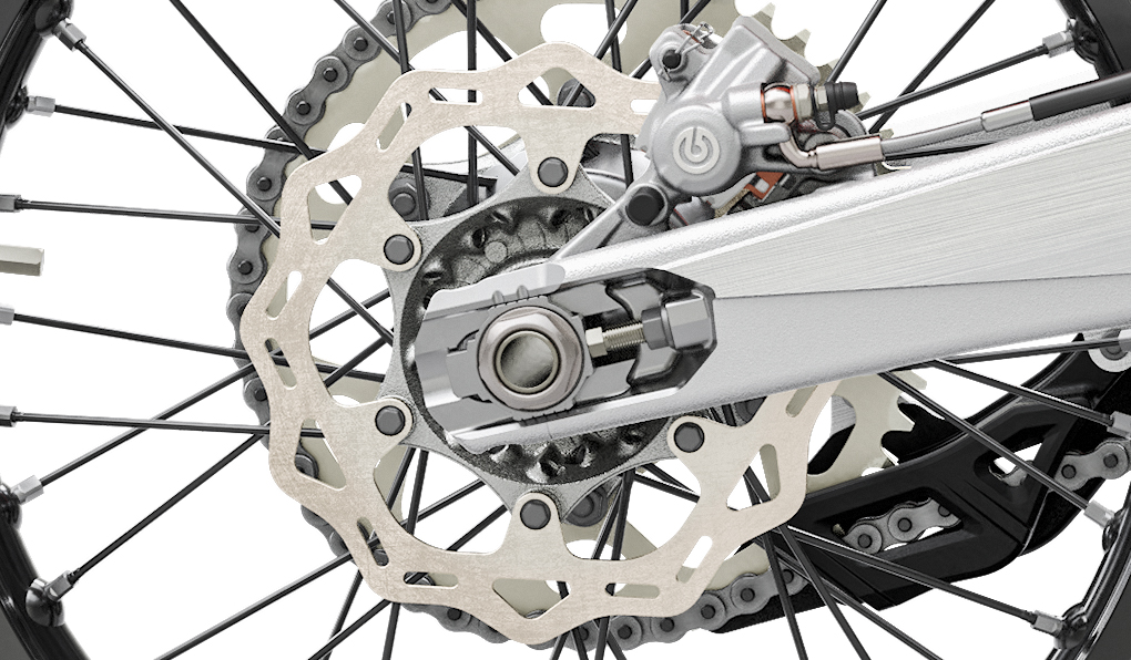 The design of the die-cast crankcases allows for minimal weight and a very centralized shaft configuration. This makes the engine short and compact, while contributing to an efficient centralization of masses. The engine covers also feature a solid surface structure, which reduces the wear caused by the rider’s boots. This way, your XC-F will keep looking better longer.