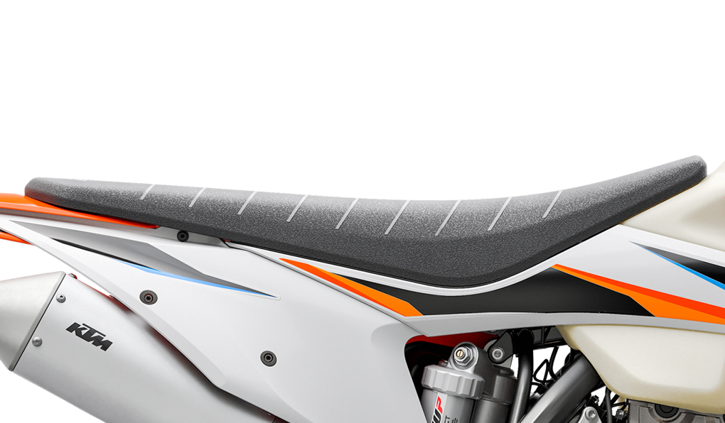 Sophisticated ´No Dirt´ footpegs prevent clogging of the footpeg pivot, even when digging in deep ruts. Looking for a higher riding position? Then just mount the footpegs of the EXC models, which are 6 mm higher than the XC versions.